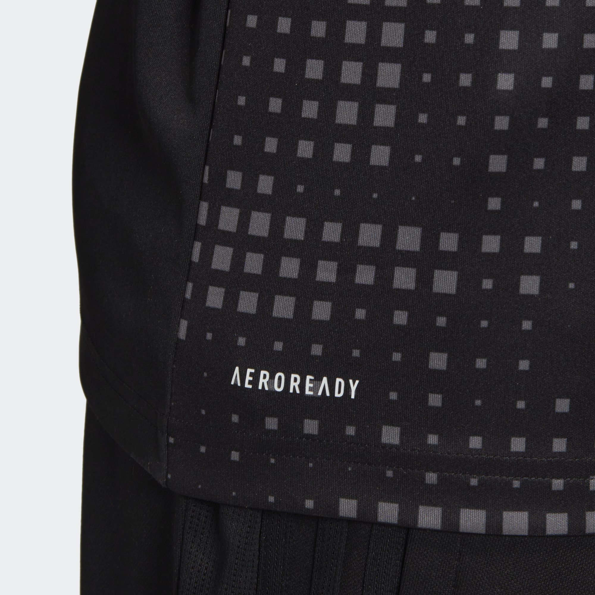 The New Heritage features a black jersey with grey checkerboard print on the front, as well as three gold stripes over the right shoulder.