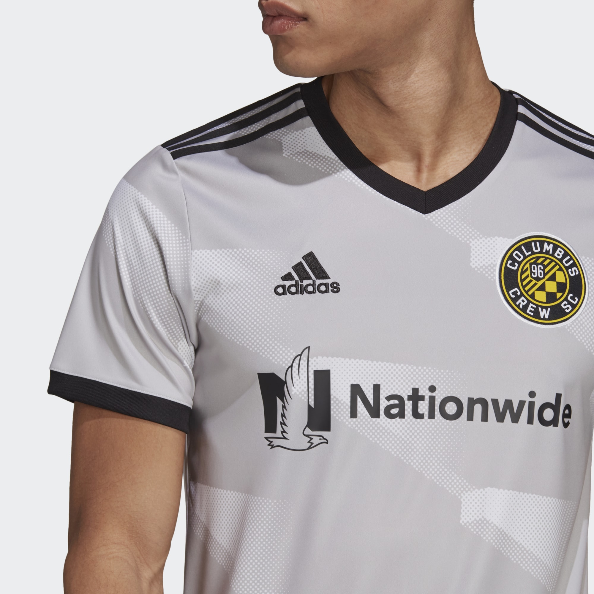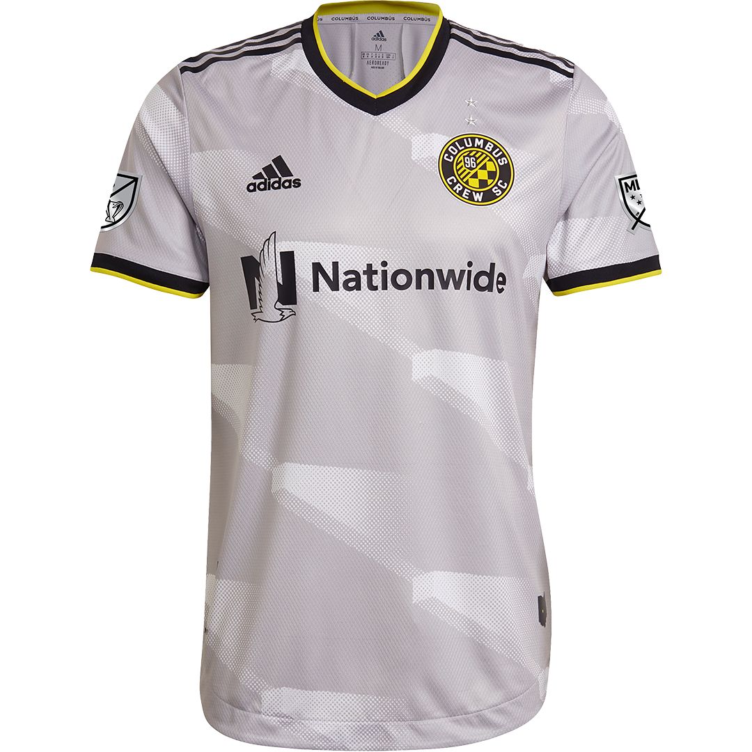 The Inaugural Stadium Kit is inspired by the iconic architecture of the New Crew Stadium, featuring a grey and white pattern on the jersey reminiscent of the sharp, modern angles of the stadium which is set to open this July. Additionally, the jersey also features Black & Gold accents and trim.