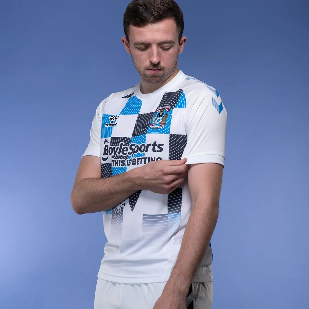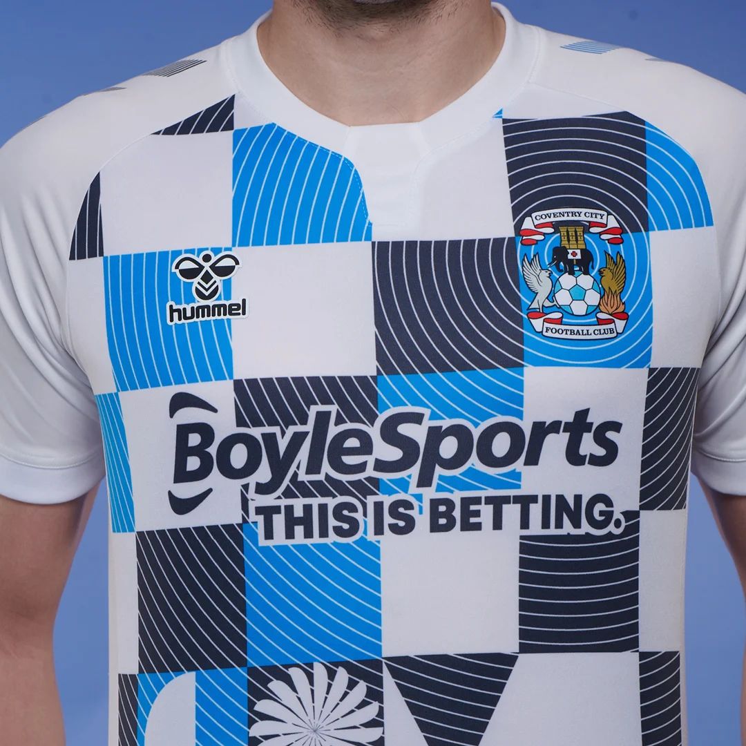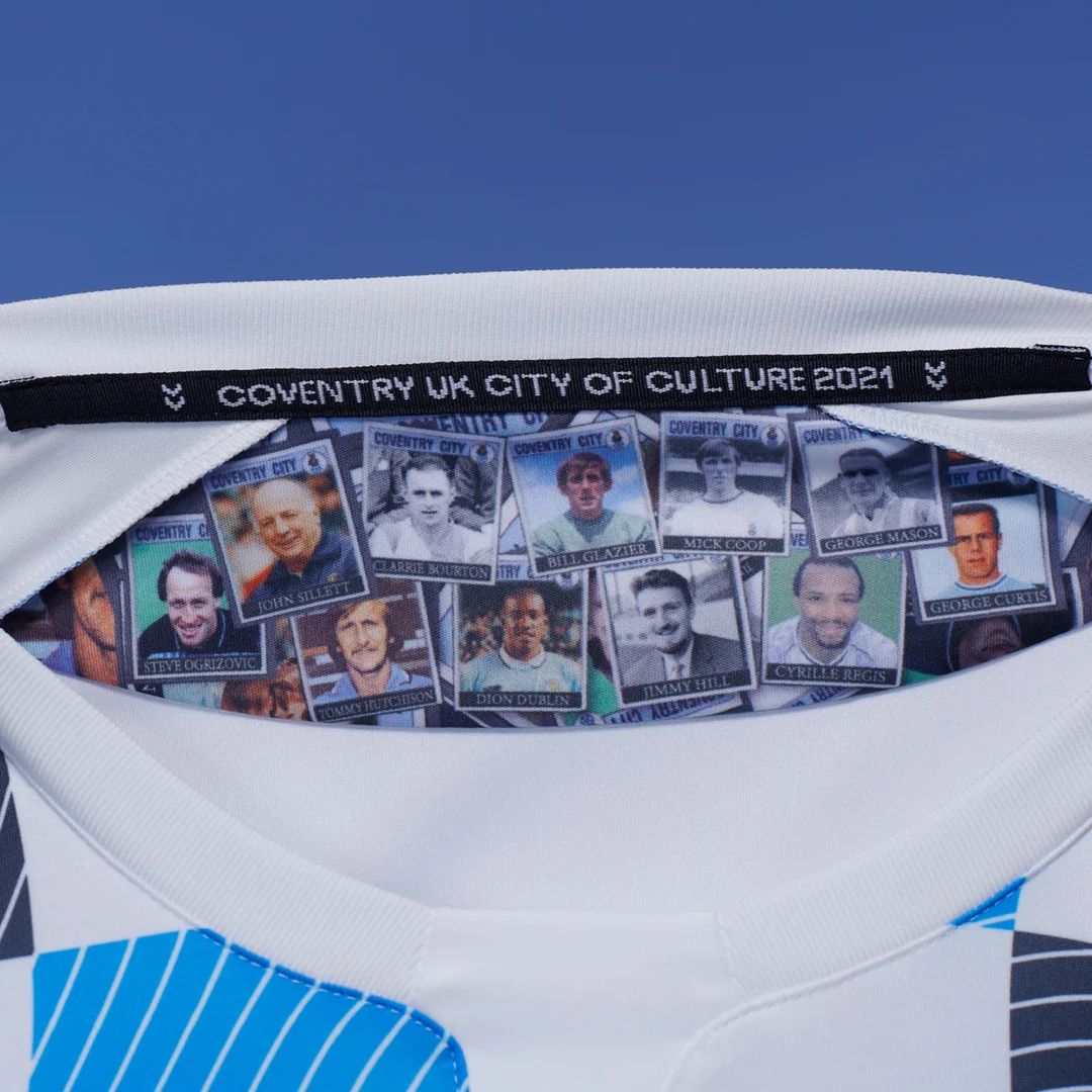 Inside the neckline of the shirt, images of Coventry City legends who have played a prominent role in the Club’s history feature – with Steve Ogrizovic, John Sillett, Tommy Hutchison, Clarrie Bourton, Dion Dublin, Bill Glazier, Jimmy Hill, Mick Coop, Cyrille Regis, George Mason and George Curtis all shown.