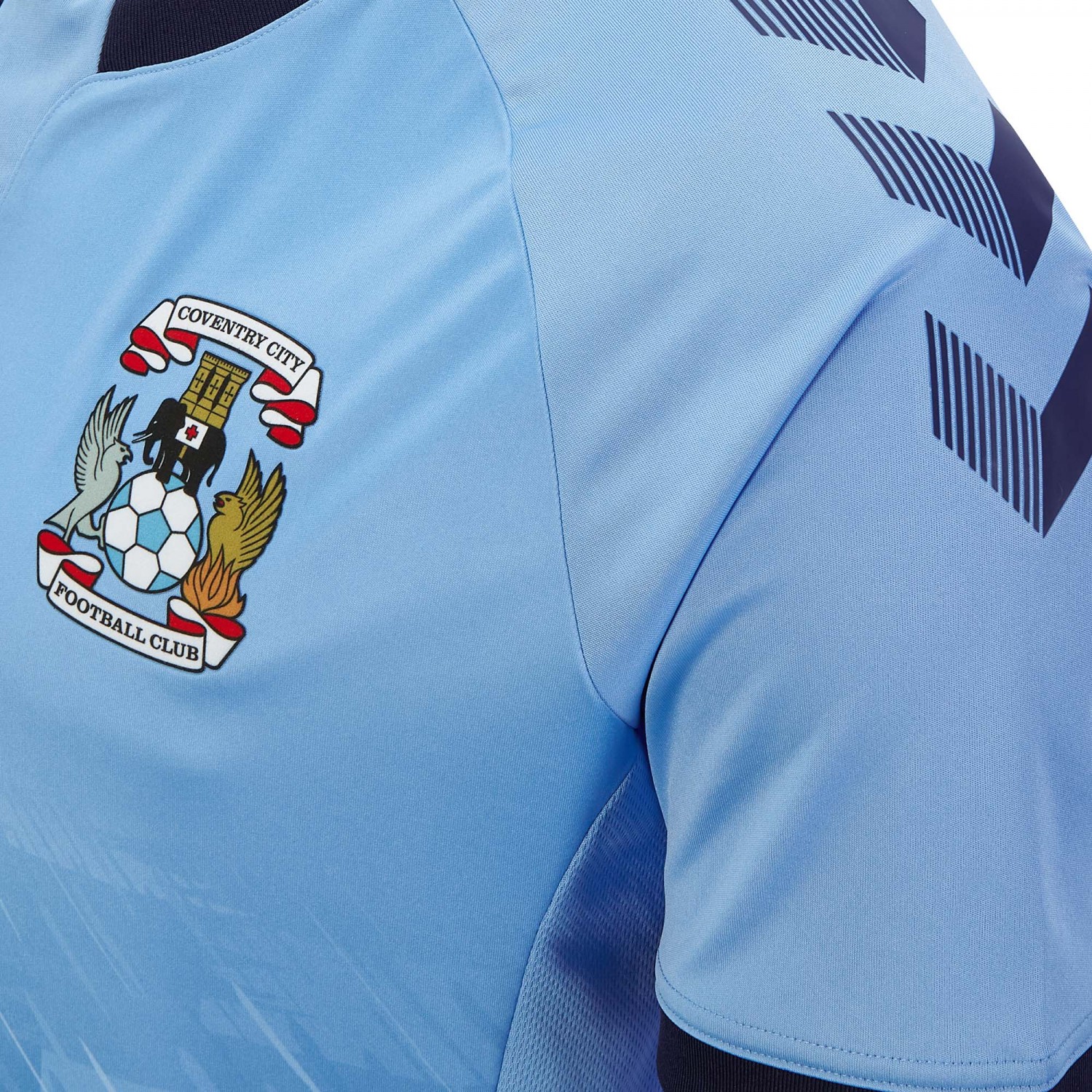 Again the famous Hummel chevrons feature prominently on the sleeves, while distinctive touches include CCFC slogans and branding – including the words ‘Sky Blue Army’ on the inside back of the shirt, 'PUSB' on the trim and the elephant from the club crest on the rear of the shirt along with the accompanying motto ‘We Are Strong’ on the inside rear of the shirt.