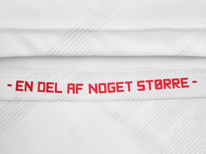 The new primary change design shares much in common with DBU (Danish Football Union) shirts of the past, in that the white sleeves used - raglan, in this case - are the same applied to the Home shirt, while in this case they match the trunk.