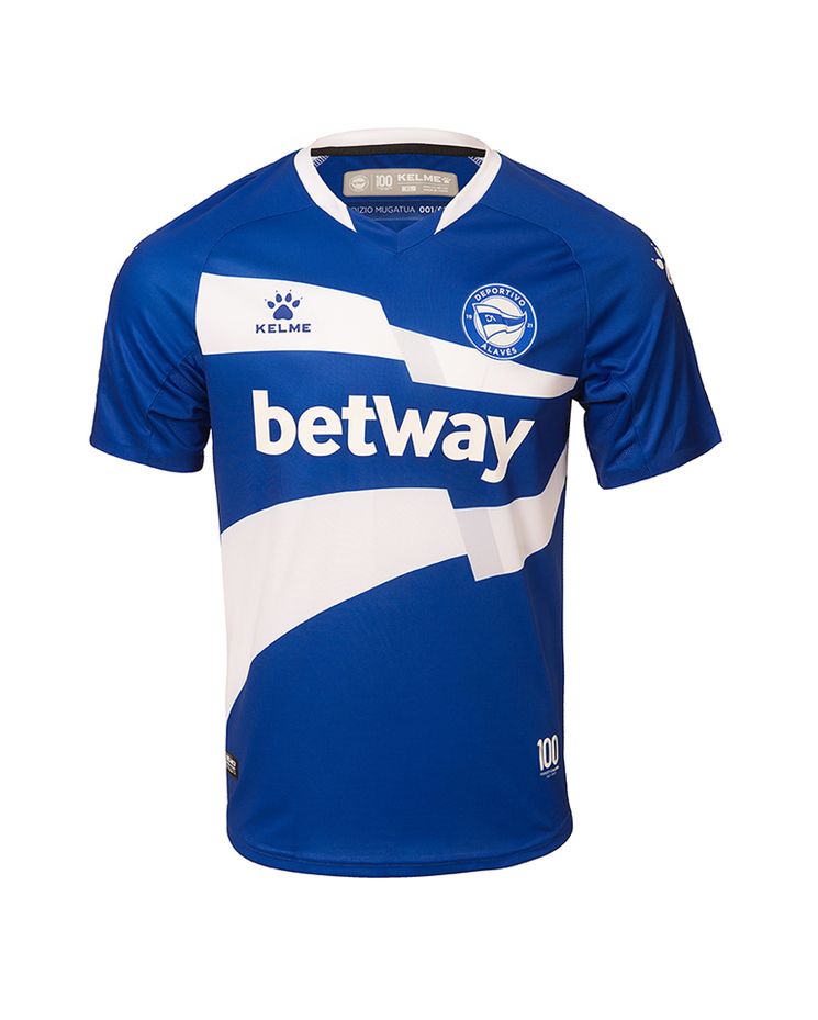 This release, to celebrate the club’s centenary, marks Alavés’ “journey of their lives” this year with “100” detailing, but otherwise keeps embellishment to the standard Kelme logos, crest and “betway” primary sponsorship logo.