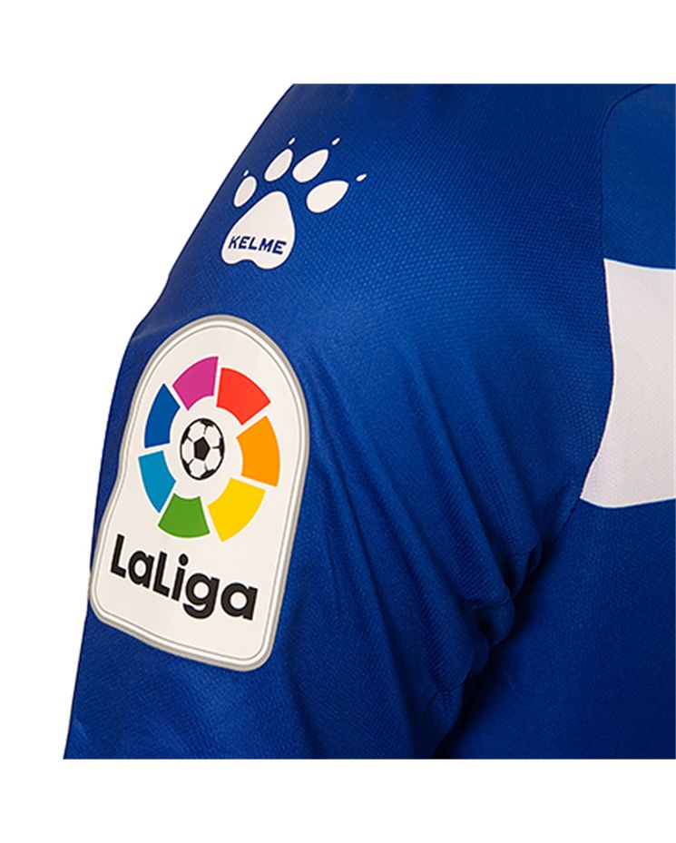 Produced by Kelme and designed by the club in-house, the shirt features the famous white and blue flag from the crest writ large across the trunk.