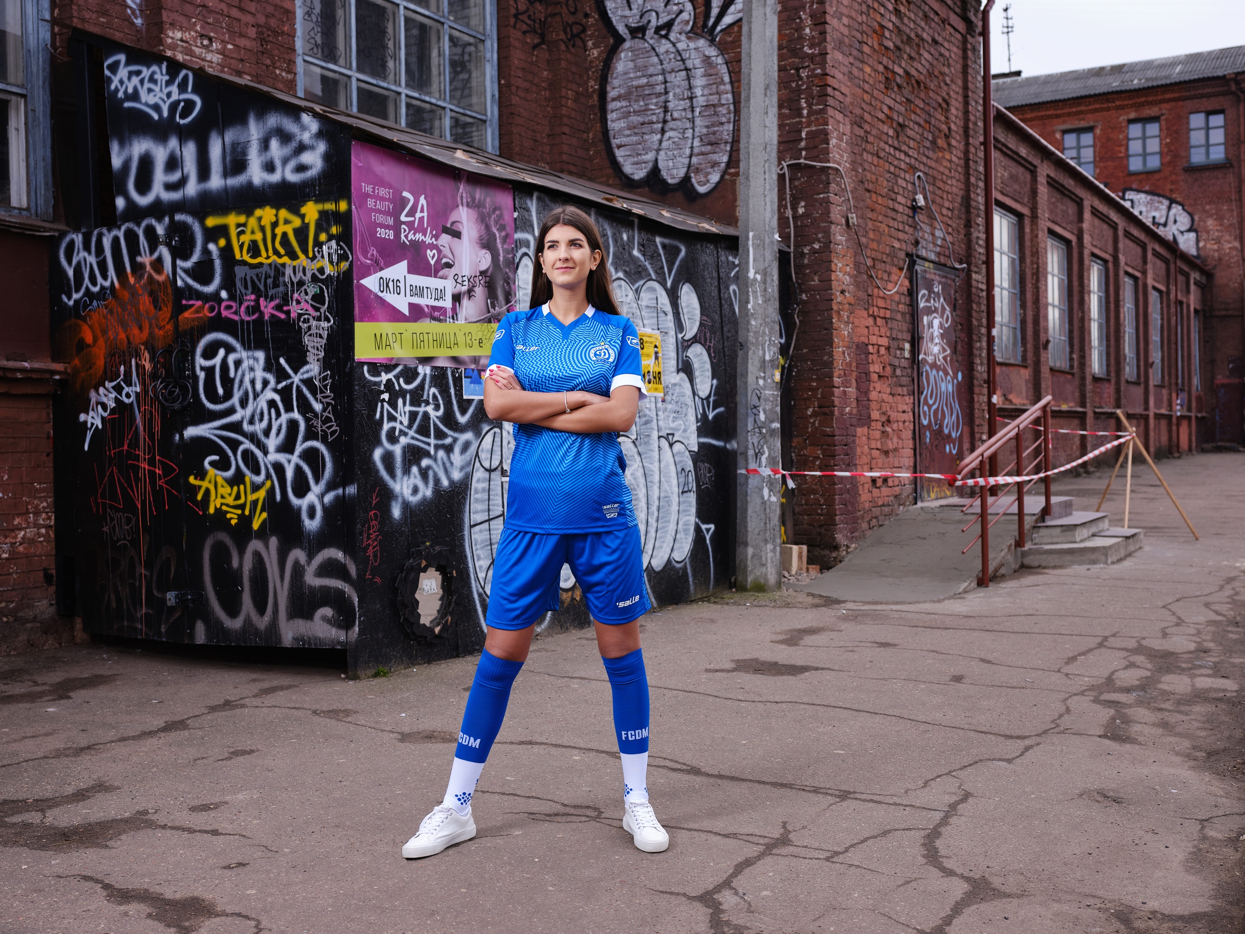 The home shirt for the new season is made in traditional blue and white colours. The energy waves diverging from the logo symbolizing the energy of fans, players, employees, club veterans - all those who treat the "D" not just as s sign on the chest, but as life itself.