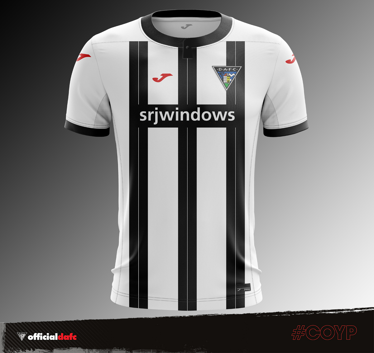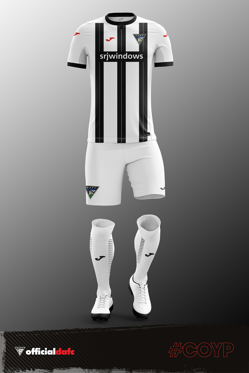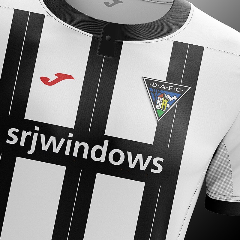 The white and black home kit is once again produced by Joma and proudly carry shirt sponsor SRJ Windows.