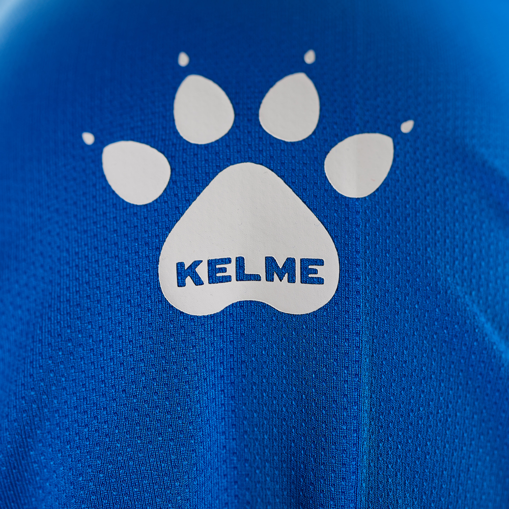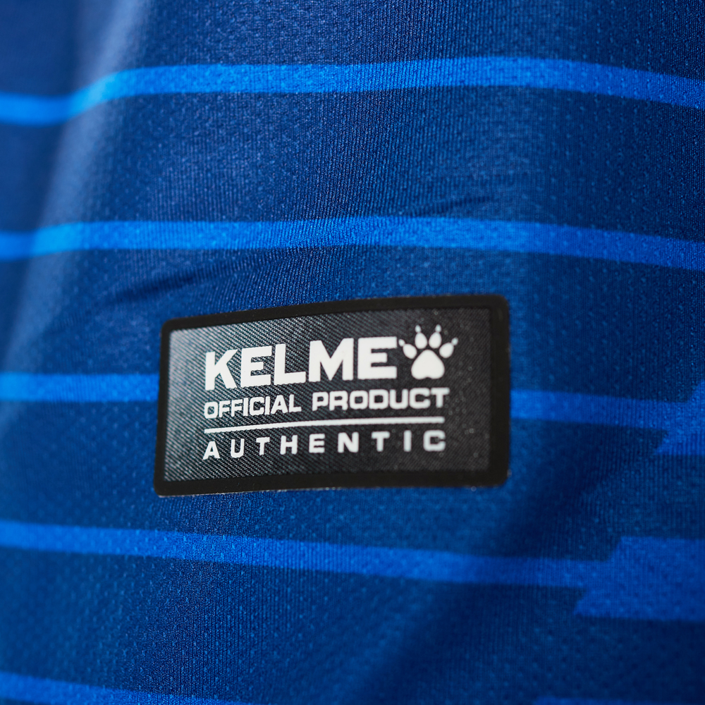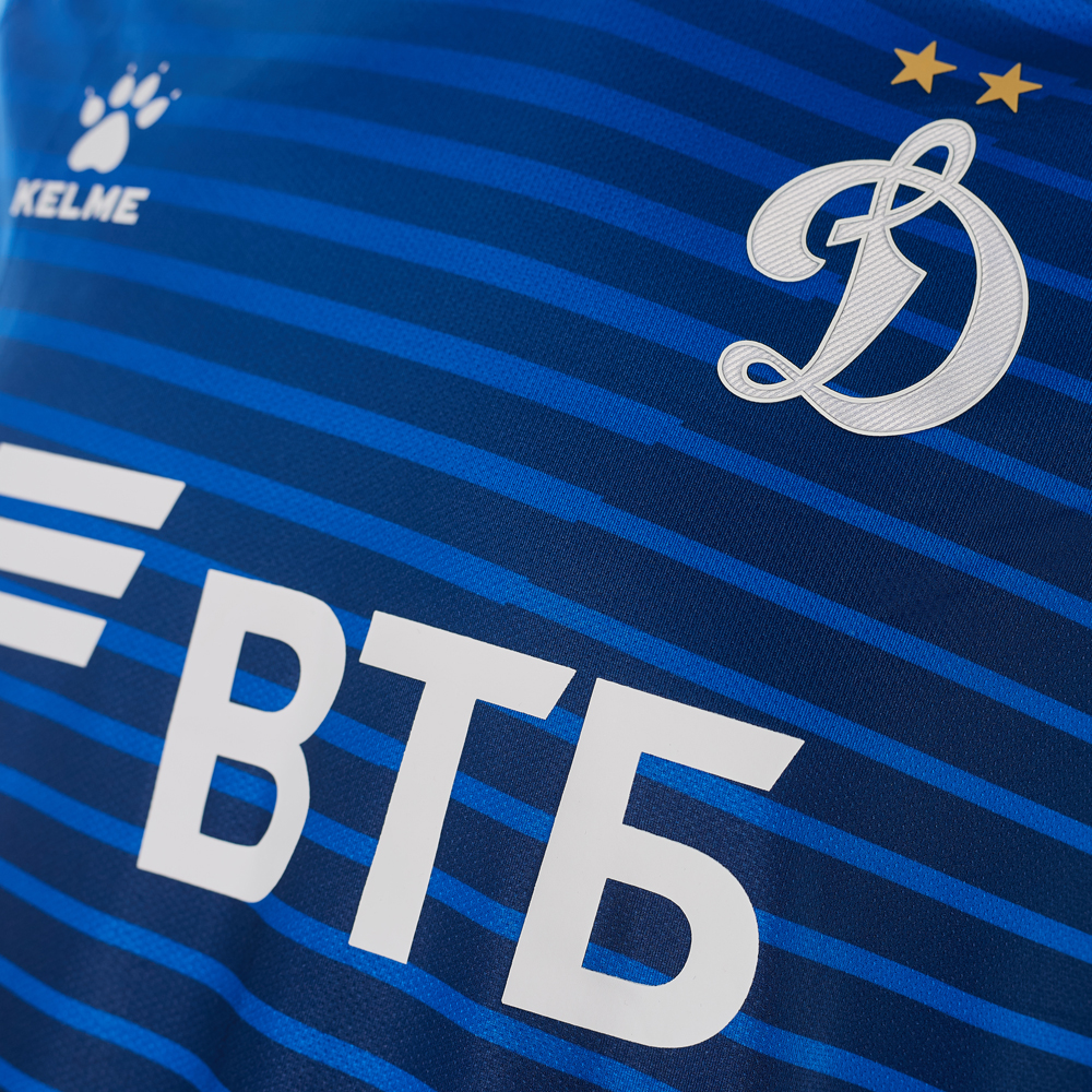 The blue design with white trim has a torso line texture which is marketed as being inspired by the skyscrapers of Moscow. The Kelme logos appear in white, along with the famous “D” crest and the branding of the primary sponsor.