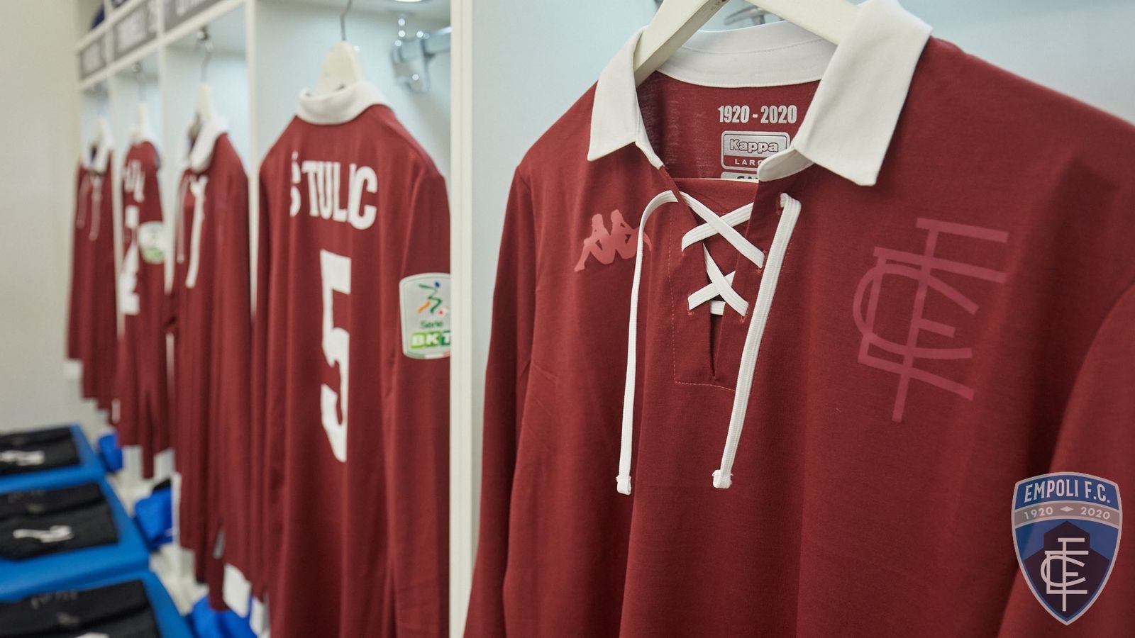 As worn against Pisa last Friday, this is the Empoli Football Club special edition Centenary shirt by Kappa.