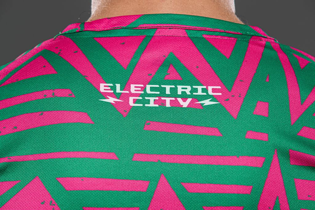 To pay homage to the progressive changes that have been made throughout Oklahoma City in recent decades and the electric atmosphere at Taft Stadium, the look and theme of this line is being referred to as “Electric City”, with the moniker emblazoned across the yolk on the back of the shirt.