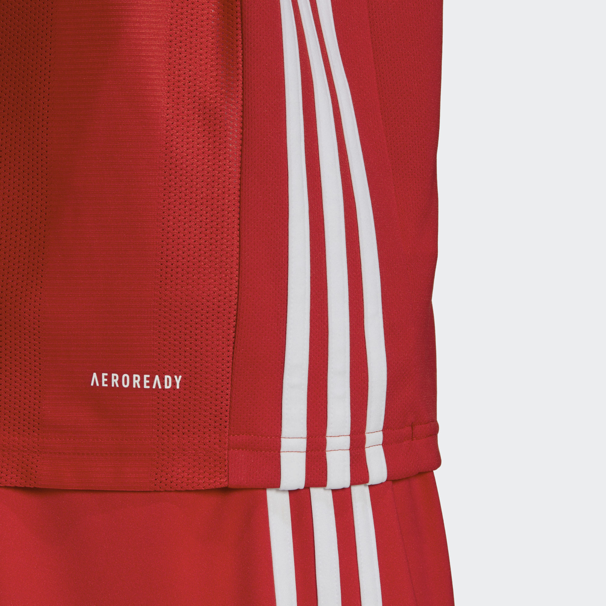 Stripe details worked into the fabric give the red shirt a high-quality look, while fine white edges on the collar and sleeves complement the design. A special feature is the club motto of "Mia san mia” woven into the neck. Red shorts and socks complete the home kit, while the goalkeepers have a blue and green ensemble.