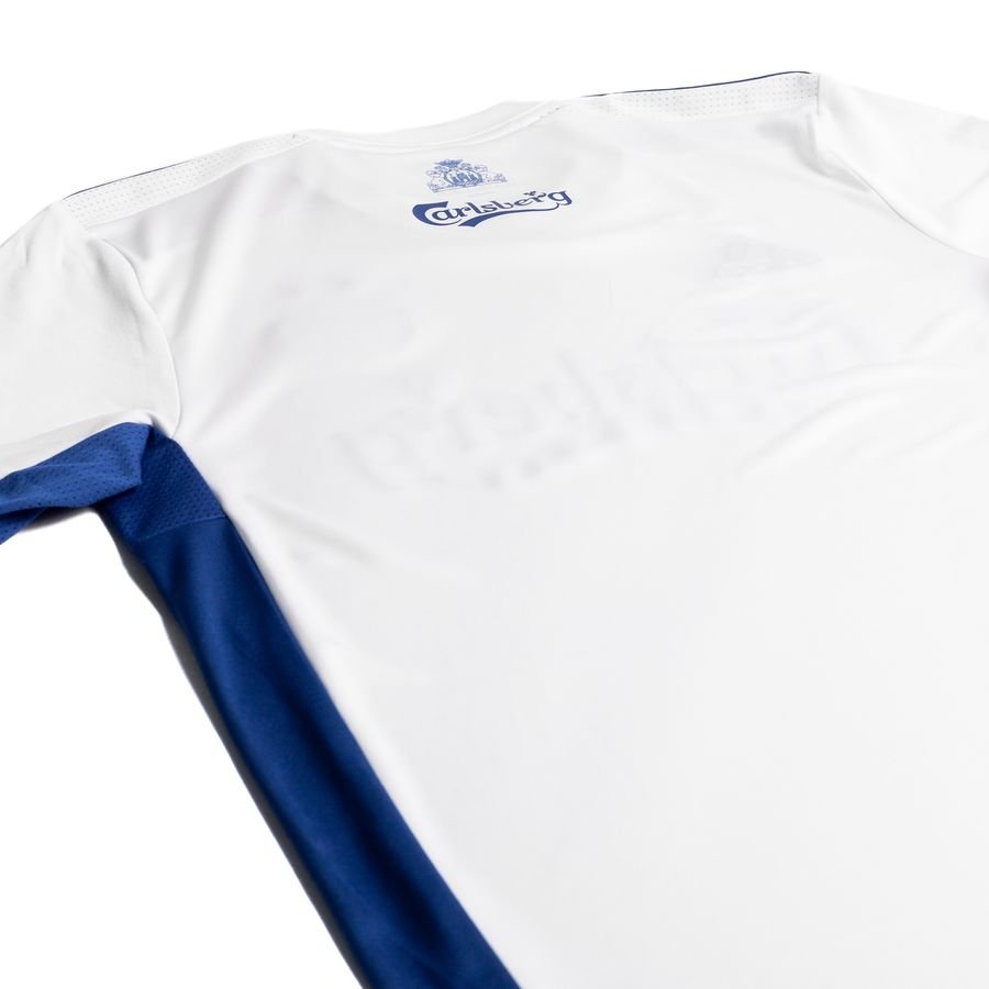 The Danish Superliga side have a new white Home shirt, with contrasting royal blue providing all embellishment save for the full-colour crest - including sizeable cuffs and side of torso trim, as well as all adidas branding.
