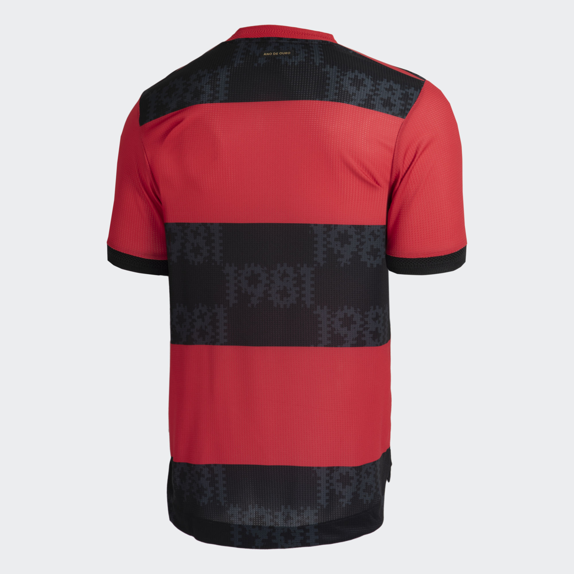 This tribute takes the form of both the “1981” shadow print and the thick red and black horizontal striping echoing the kit of that glorious year, while the adidas logo and crest are in white and there is a “ANO DE OURO” (golden year) inscription on the upper back.