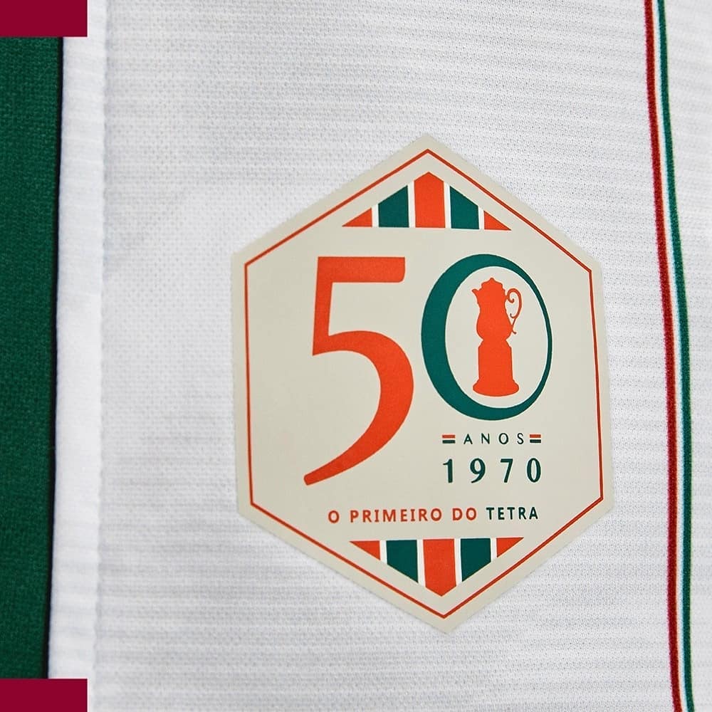 To further celebrate this partnership and the first Brazilian title, Fluminense and Umbro developed two commemorative stamps, which will be at the height of the neck and on the hem of the shirt. The first brings the stylized Umbro diamond above Flu's shield, with reference to the year the club was founded. The second refers to the 50th anniversary of the title, with emphasis on the cup taken by the club and the fact of it being the first of four Brazilian championships.