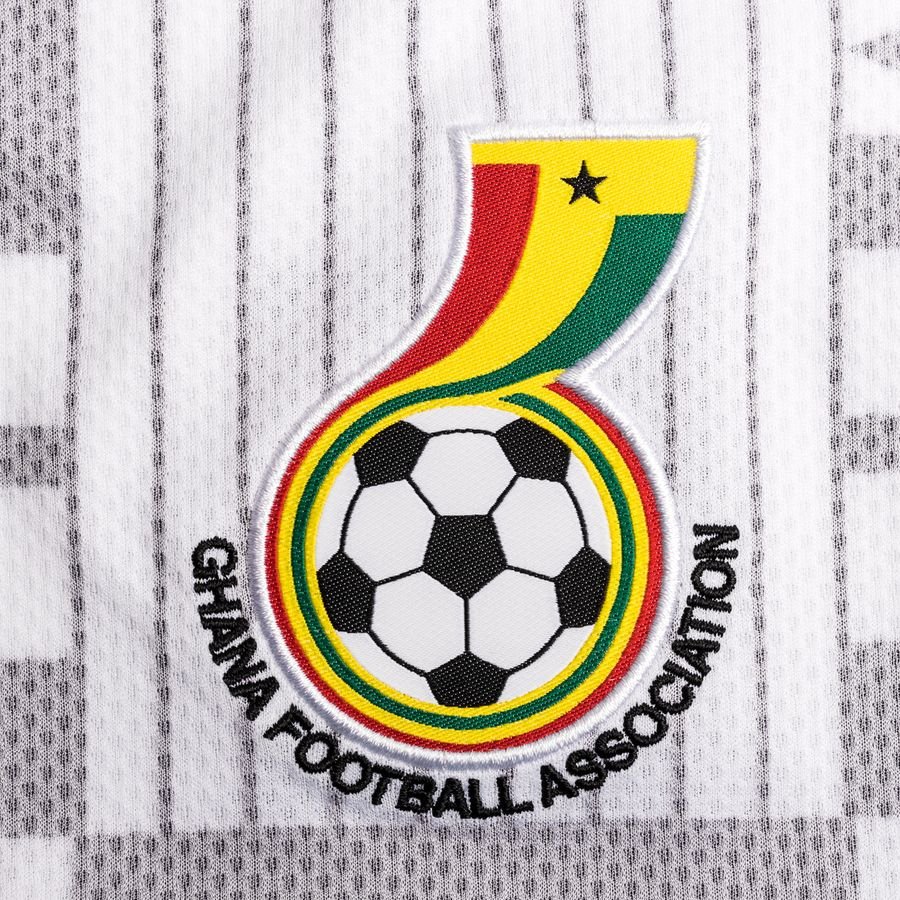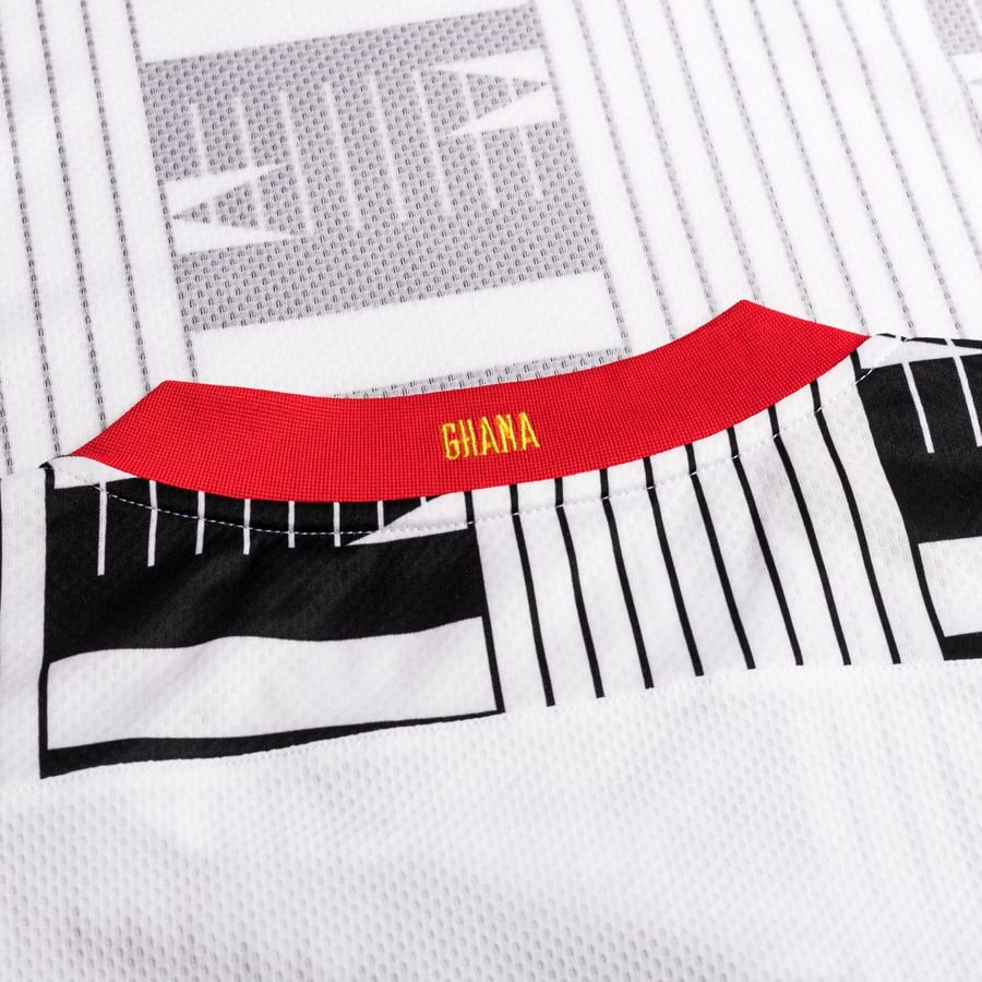 The new shirt, which will be worn in the period running up to the African Cup of Nations in early 2022, eschews red in favour of a sublimated grey pattern print on a white trunk which references Ghana’s culture, while the Black Stars’ black star is present and correct front and centre.