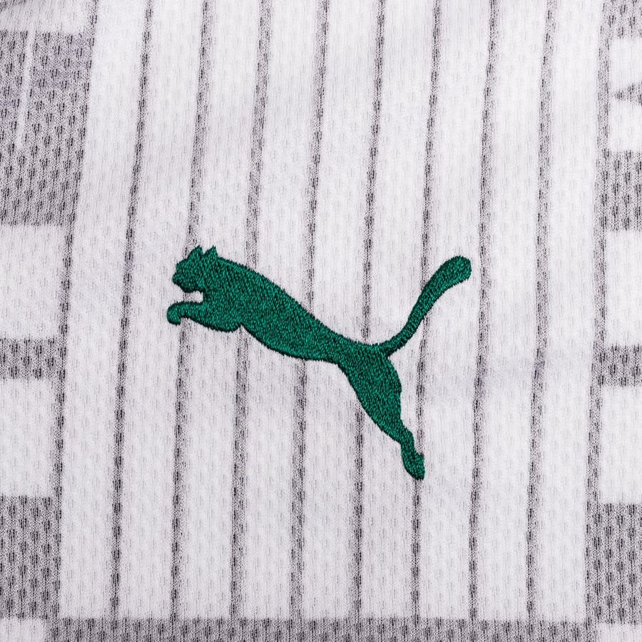 Said print is in full-contrast black on the sleeves, while the crest is in full colour, the Puma logos are in green, and there is red trim on the neck with “GHANA” print in yellow on the back.