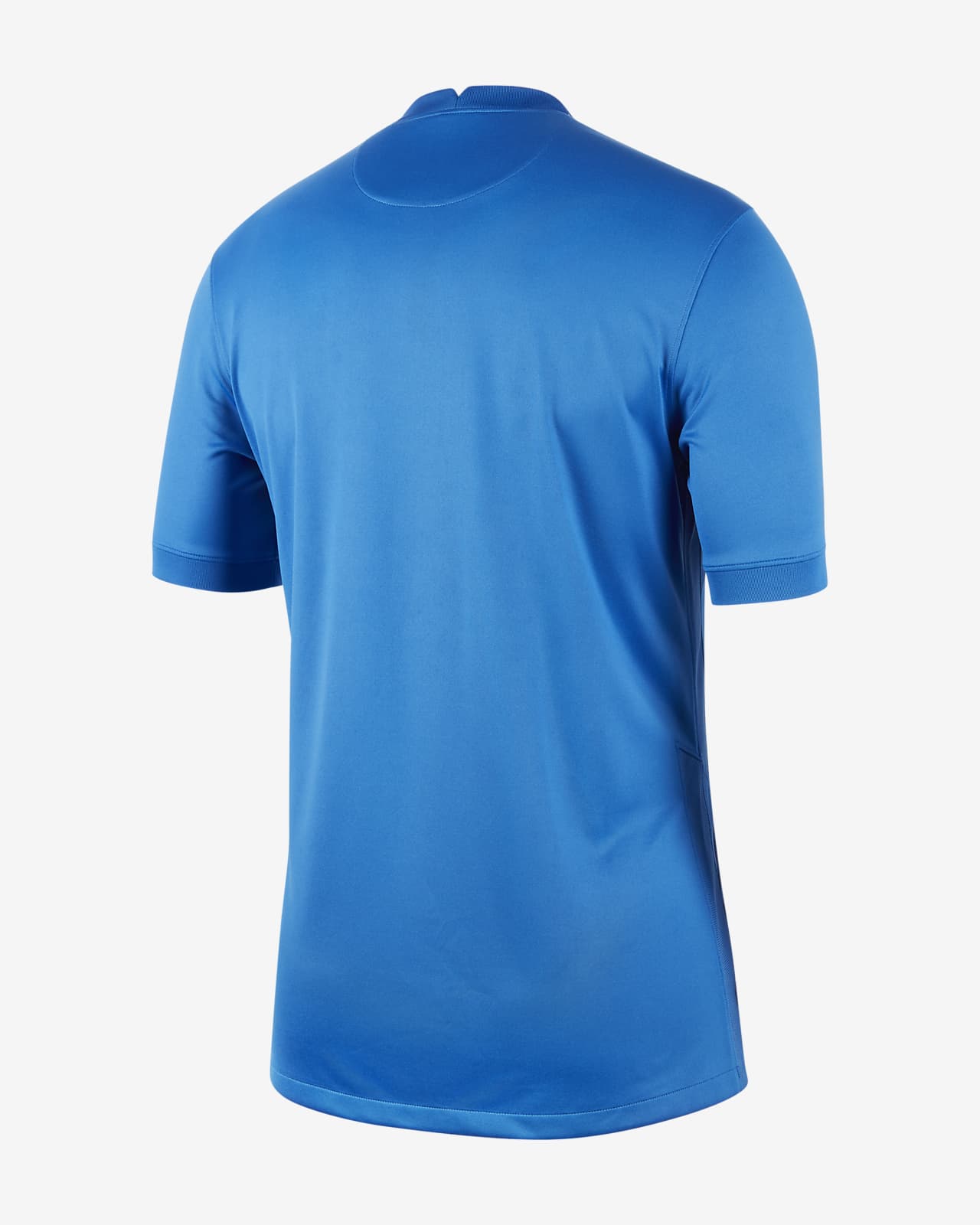 Echoing the design of the Home equivalent, here the royal blue shirt carries a national flag-inspired sash in a darker hue, with the equally flag-inspired crest patch in the standard blue and white colouring.