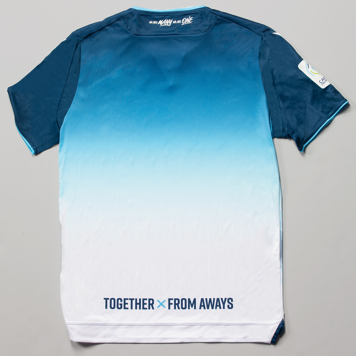 Inspired by the famous song “Barrett’s Privateers” by Stan Rogers, a soundwave of the song is boldly incorporated into the fade design on the front of the jersey. The song is a modern folk song in the style of a sea shanty, full of many authentic details of privateering in the late 18th century. It is regarded as one of the Royal Canadian Navy’s unofficial anthems and the unofficial anthem of Atlantic Canada. The sublimated gradient print is inspired by the blue of the Atlantic Ocean to the light Halifax sky. “Together x From Aways” is boldly centred on the jersey’s back.