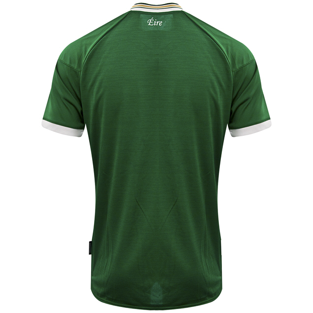 The marl-textured green shirt also sees inclusion of gold as a tertiary colour rather than secondary - displaced by white - with a neat “V”-style neck, contrast cuffs and nicely stitched crest and “Eire” detail on the upper back.