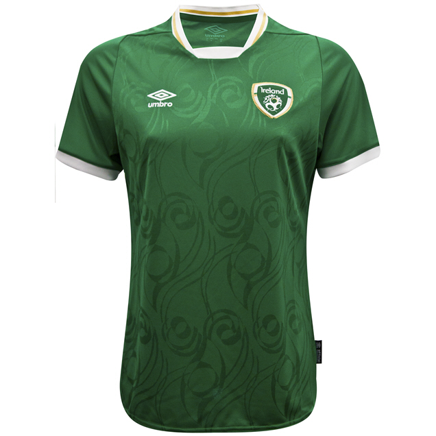 The shirt - atypically available to buy without a sponsor until the FAI secures a new deal - will be debuted by the men’s team against England in November with white shorts and green socks, while the women’s equivalent, although similarly styled, has a celtic spiral shadow pattern and a more stylised neck.