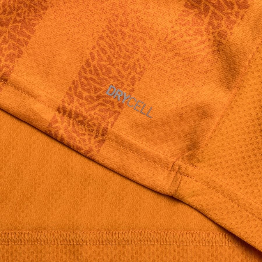 The pattern on the traditional orange-based shirt features a seemingly random scattering of interlocking stripes textured with a team nickname-nodding approximation of elephant skin - a pattern of which each element is truncated by way of fading but, perhaps sadly, not confined to the shirt’s trunk.