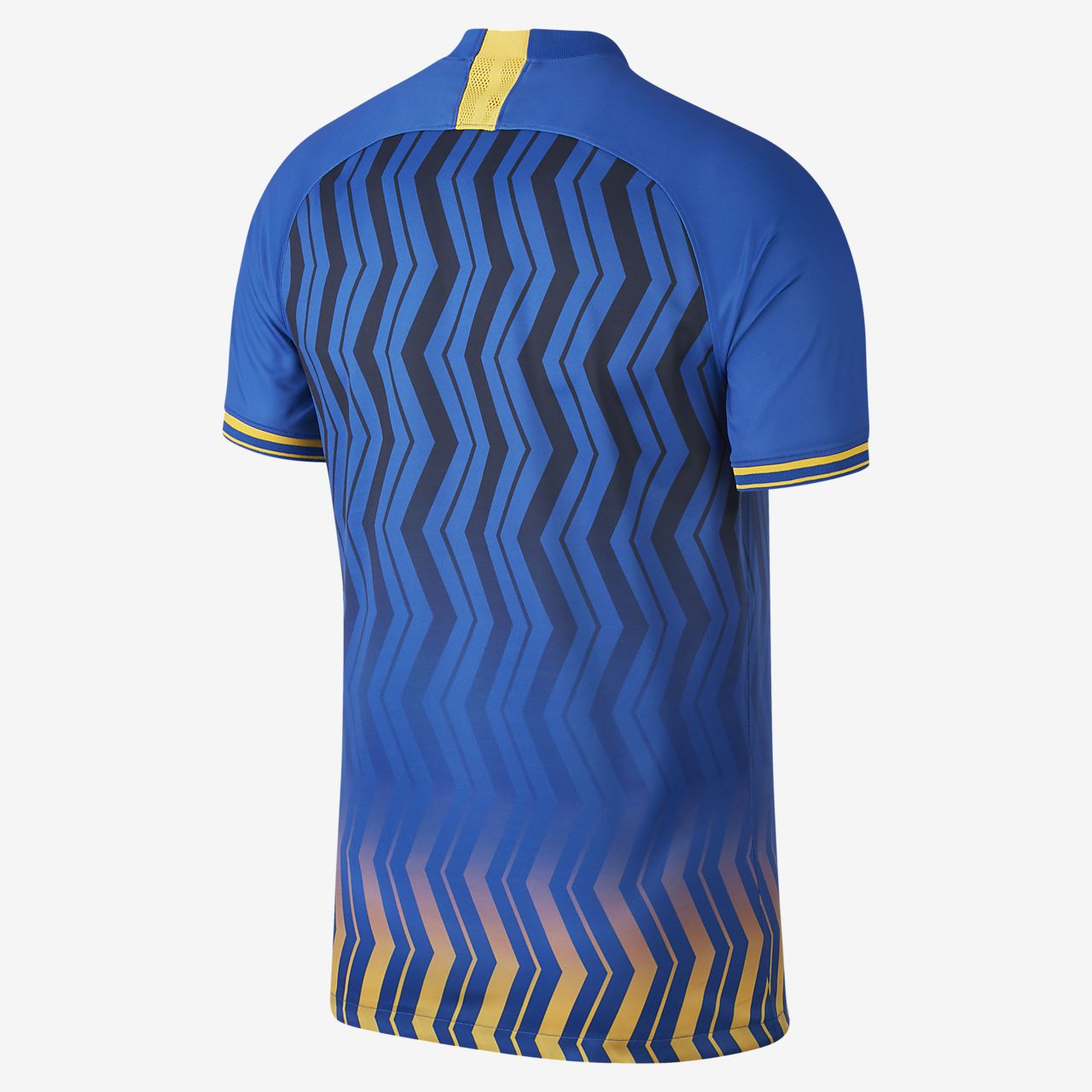 The Jiangsu Suning F.C. Home football shirt by Nike features Game Royal and Varsity Maize coloured details on highly breathable fabric to help keep you cool and dry on the pitch or in the stands.