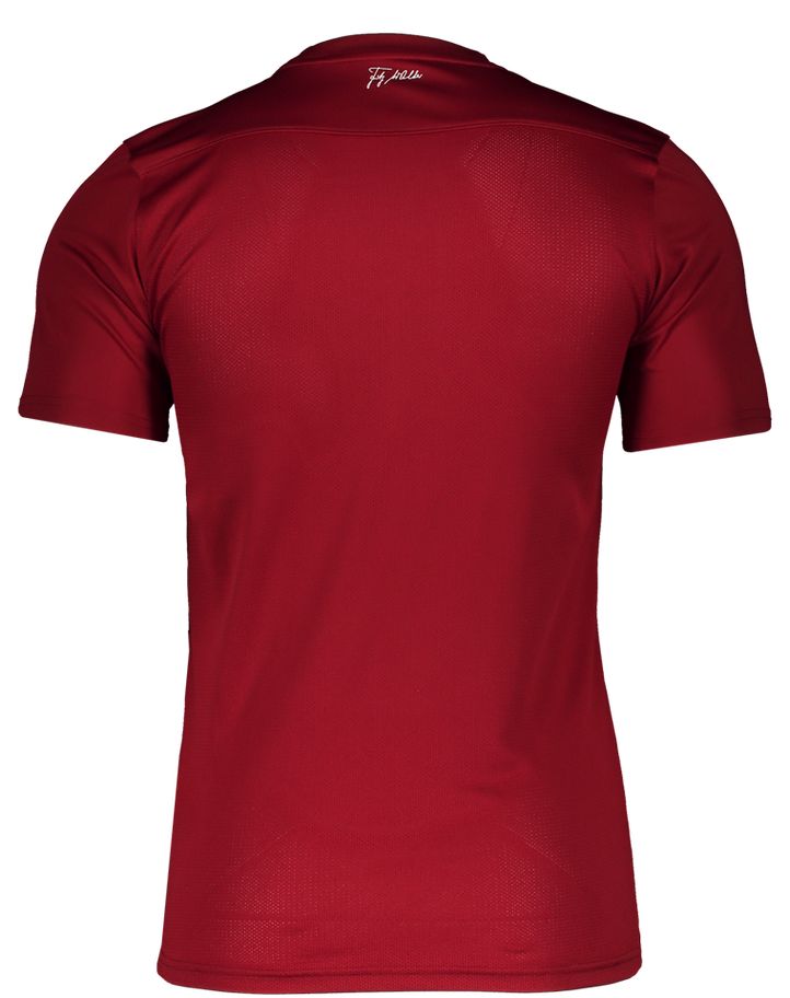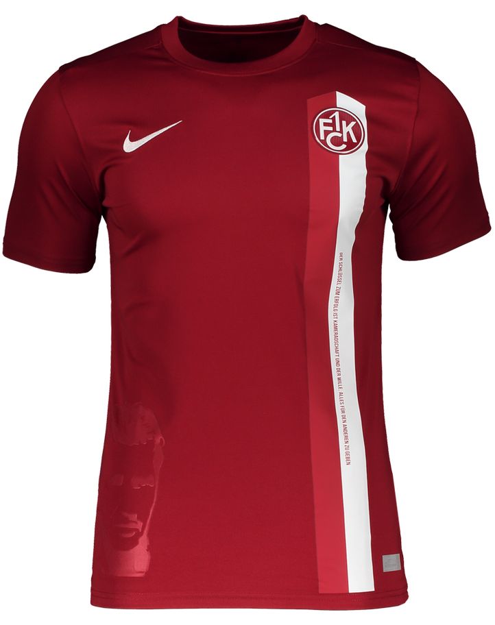 The Nike shirt, worn this week in the German 3. Liga match against Hansa Rostock, has a simple red base but honours club and country legend Fritz Walter by way of the retro-minded vertical striping underlaying the crest, and an embossed rendering of Walter’s face lower down.