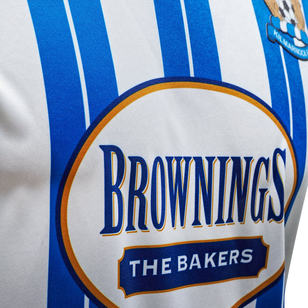 The thin white stripes within the blue of the shirt is a nod to the 1997 Scottish Cup winning kit while the back of the kit marks the 100th anniversary of the 1920 Scottish Cup winning team, the first to bring the trophy back to the town.