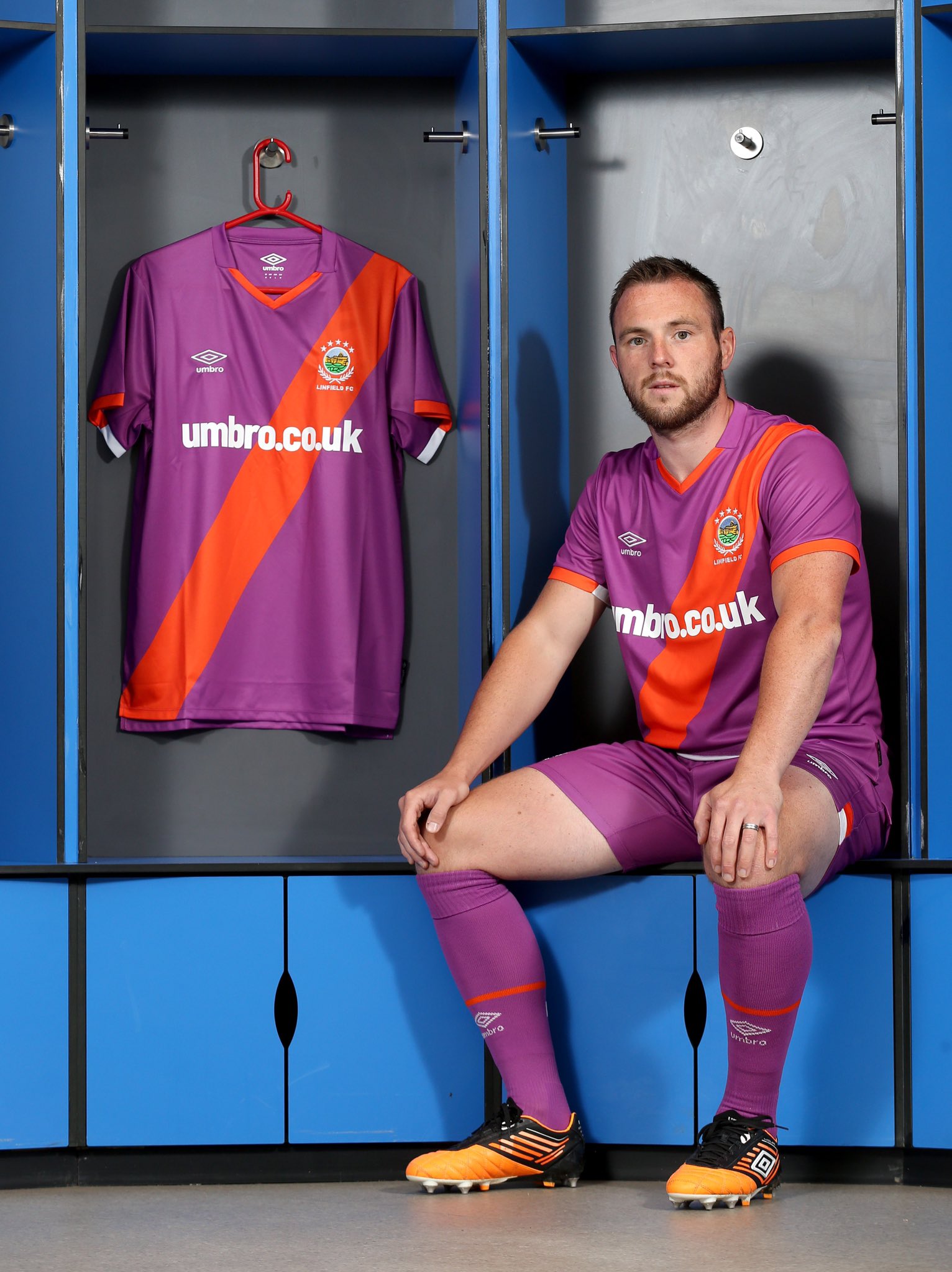 The “purple cactus” shirt on paper doesn’t provide an obvious functional alternative to the Belfast club’s first-choice blue, but is embellished with a “shocking orange” sash running from the wearer’s left shoulder to right hip.