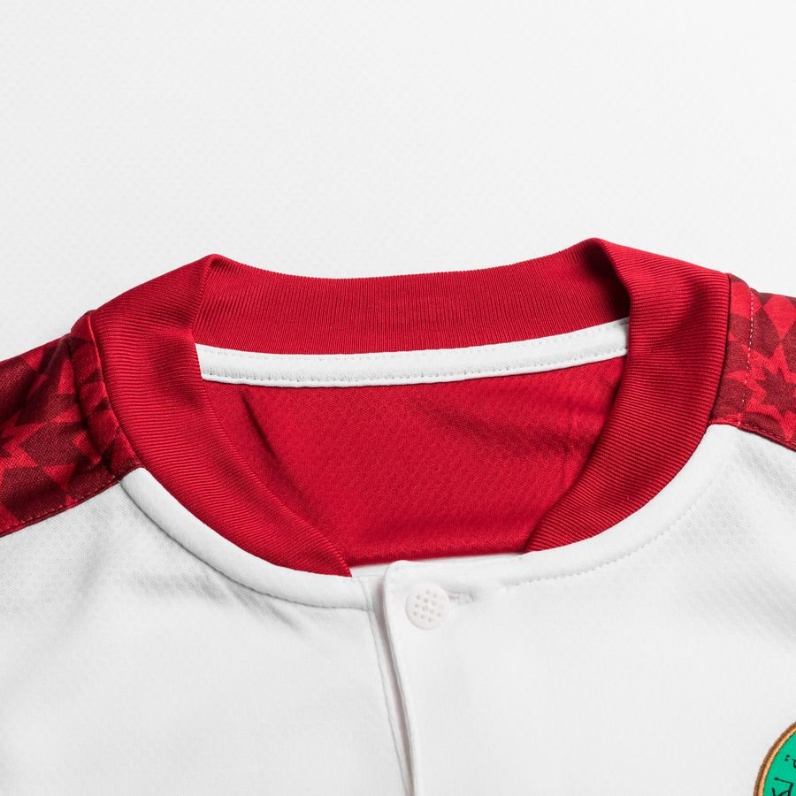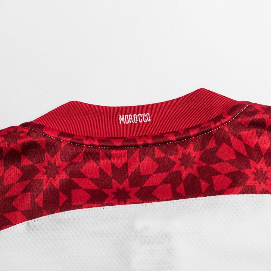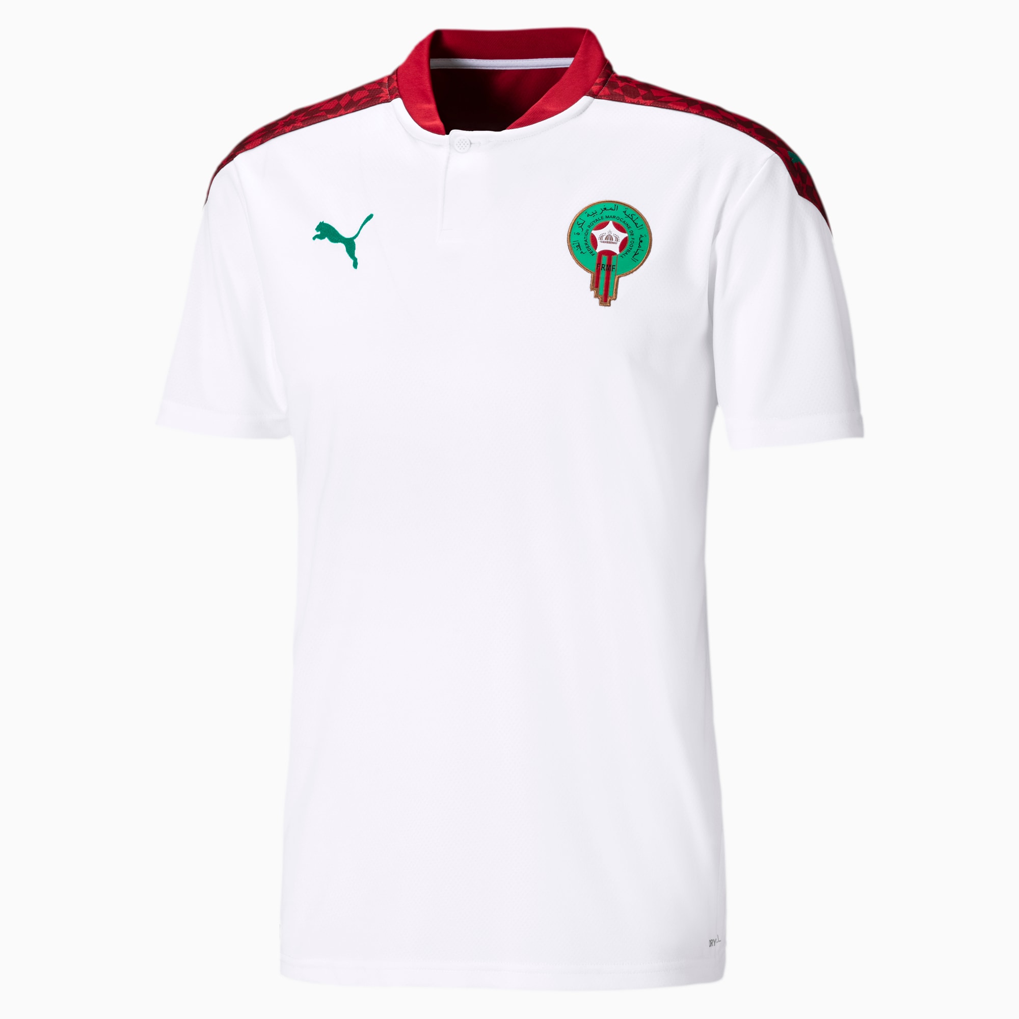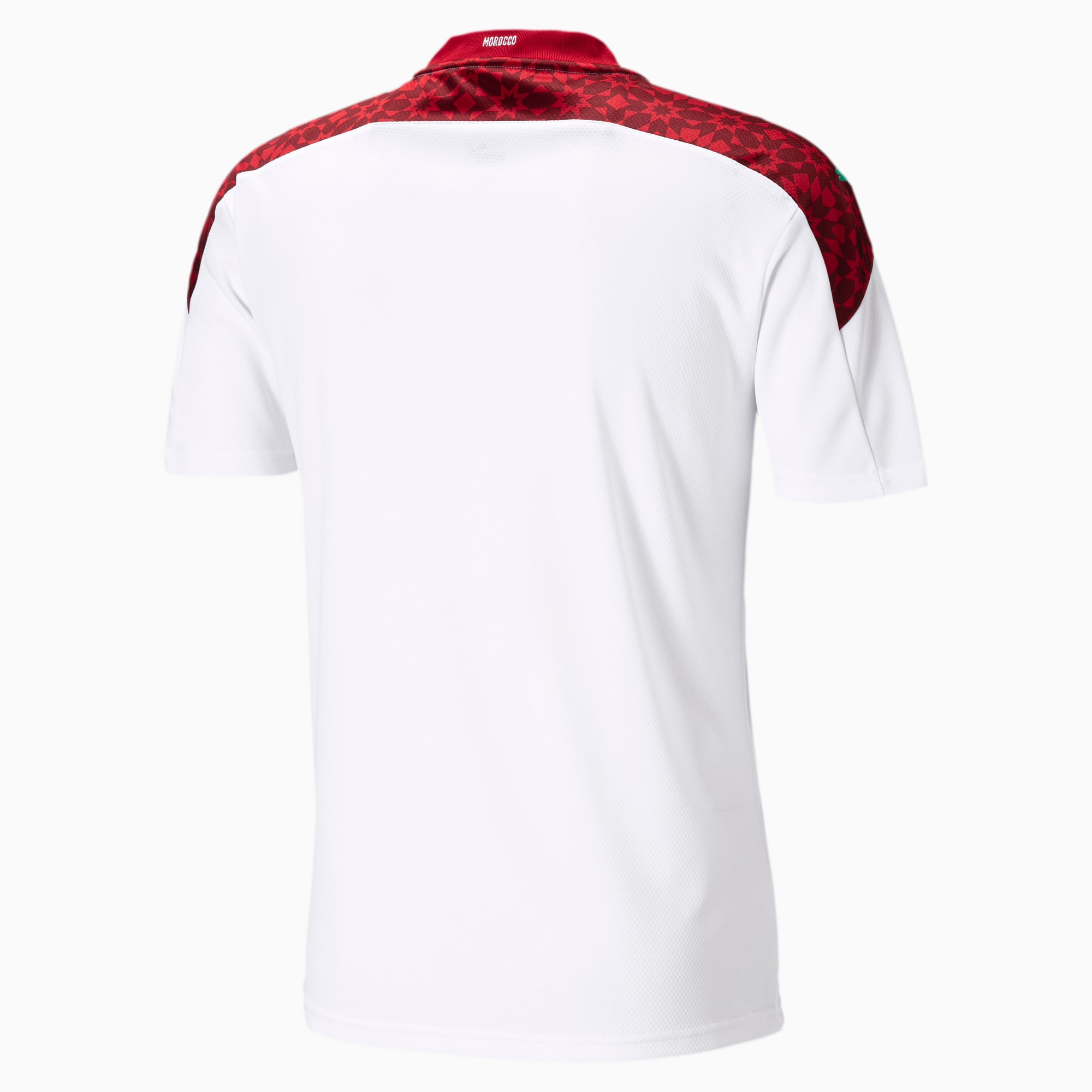 The collar is also in red, with “MOROCCO” printed in “Puma White” on the reverse, and the FRMF crest is in full colour. All the Puma logos are in “Pepper Green”.