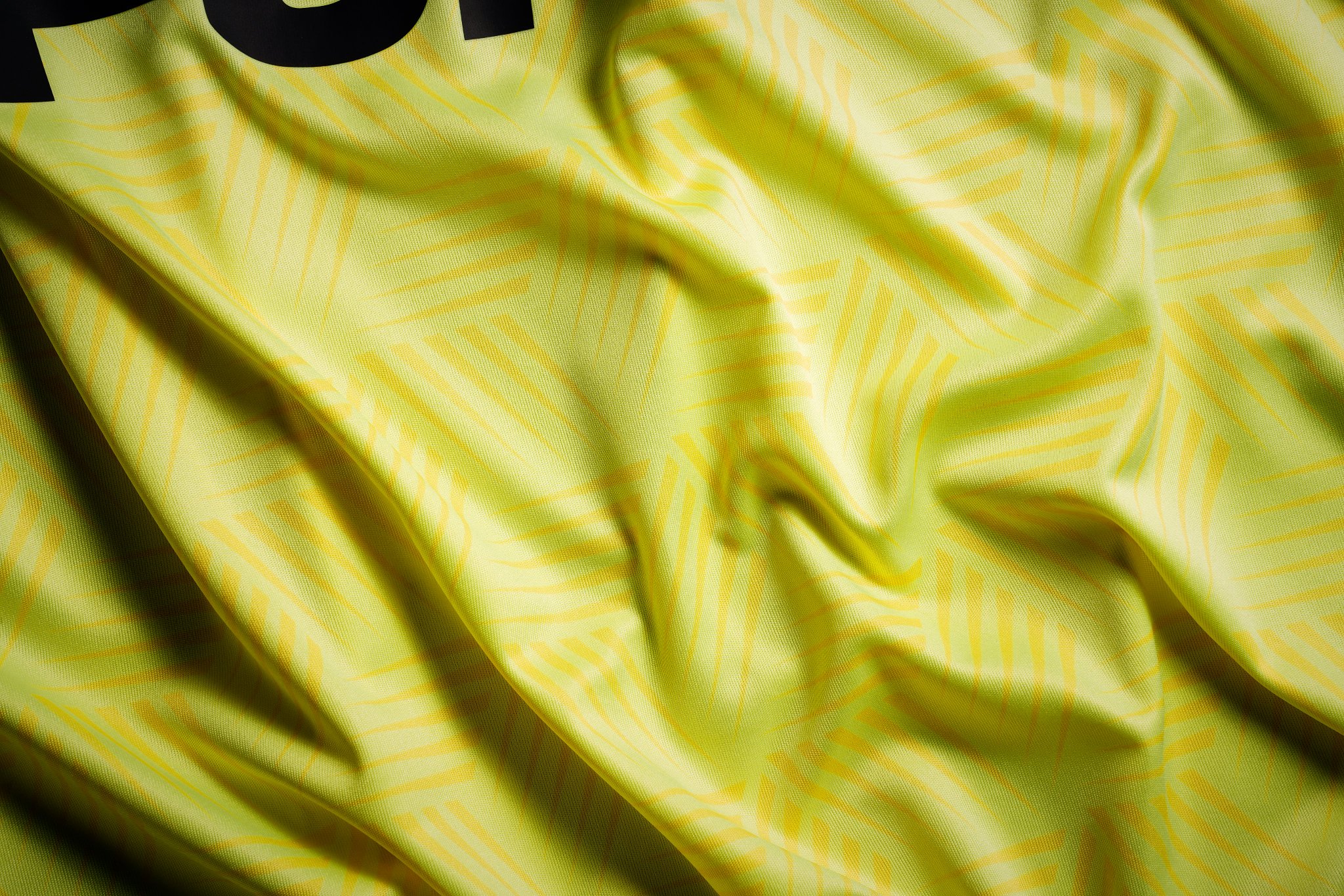 The 2020/21 campaign will see the club's away kit reverting to a yellow colourway for the first time since the 2013/14 season, with a patterned 'fizzy yellow' shirt offset by a dark 'peacoat' blue stripe across the shoulders.