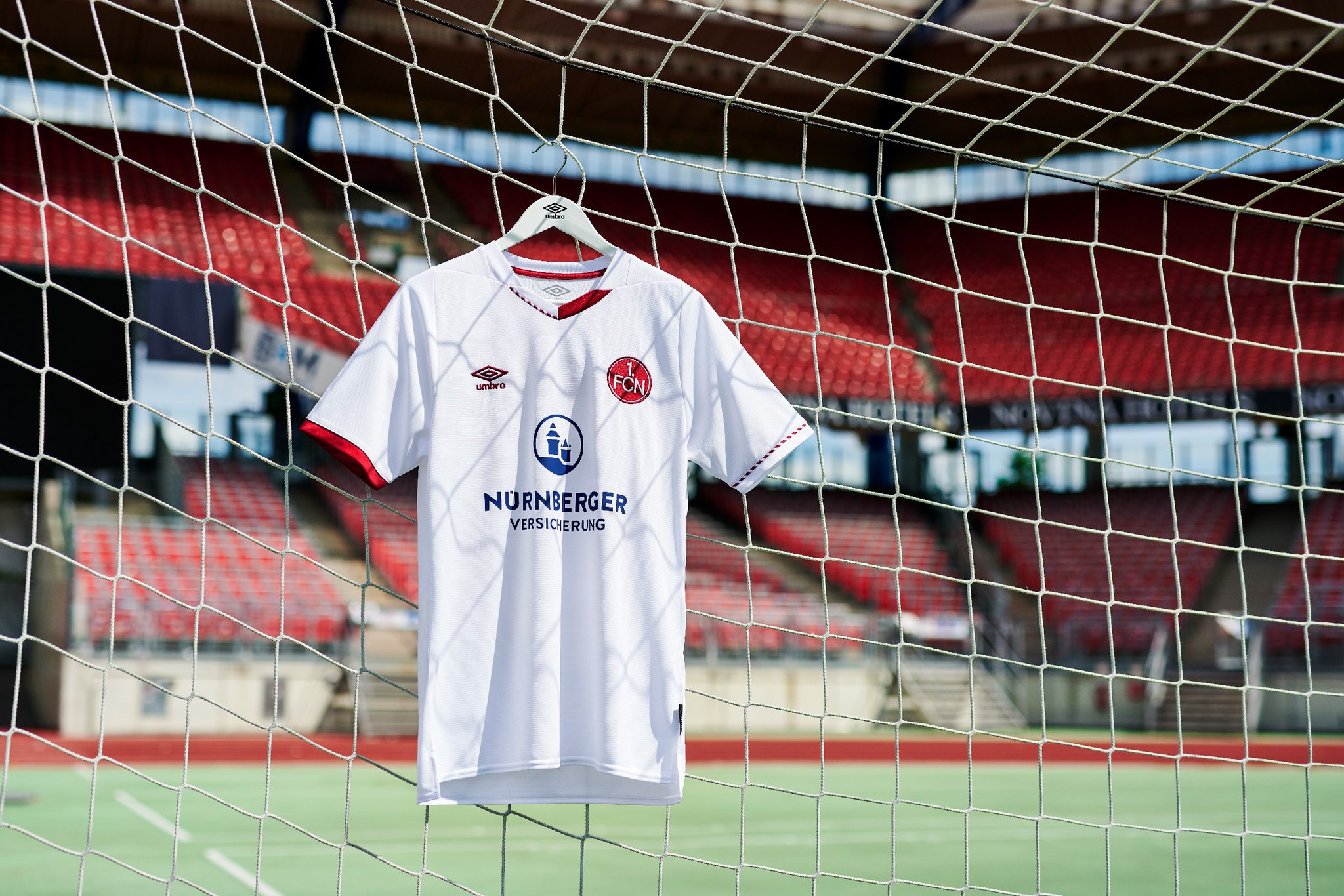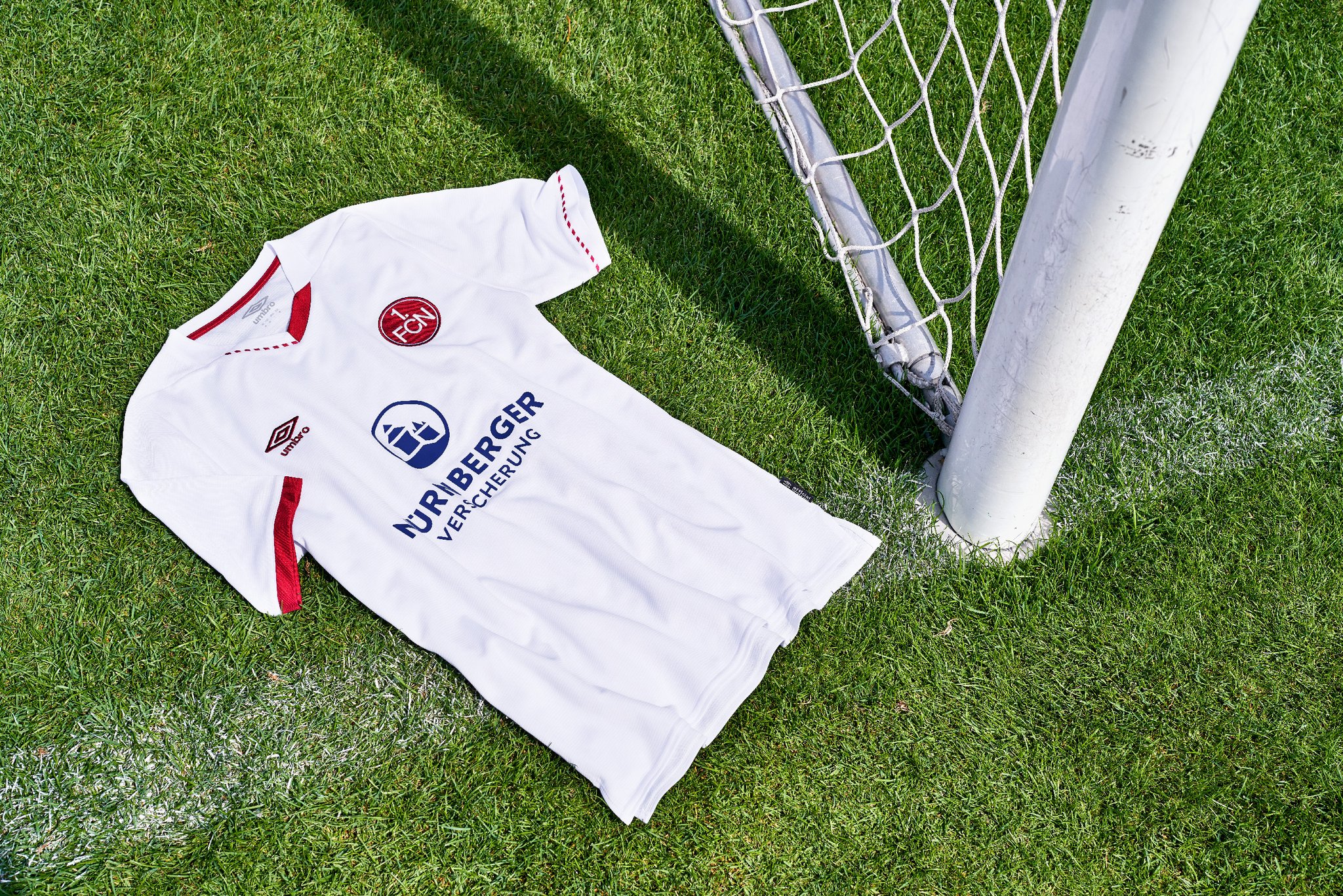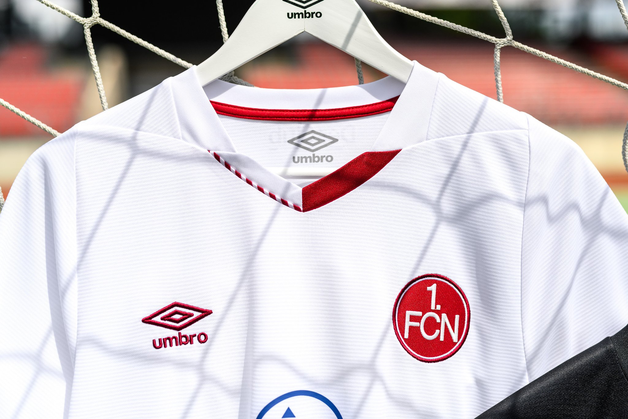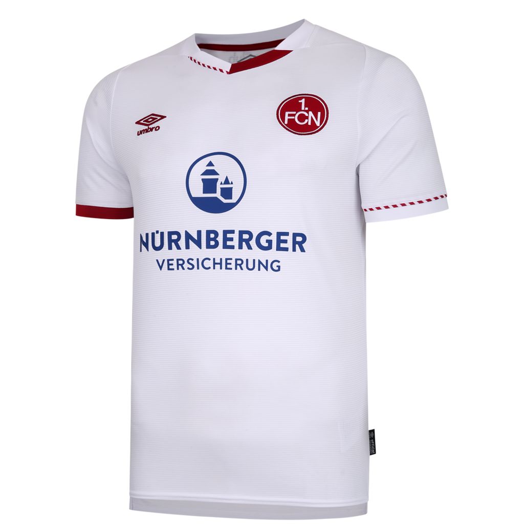 The Umbro away jersey is dedicated to the club's third colour and is completely white. As a commitment to the city, design elements inspired by the Nuremberg coat of arms adorn the collar and sleeves.