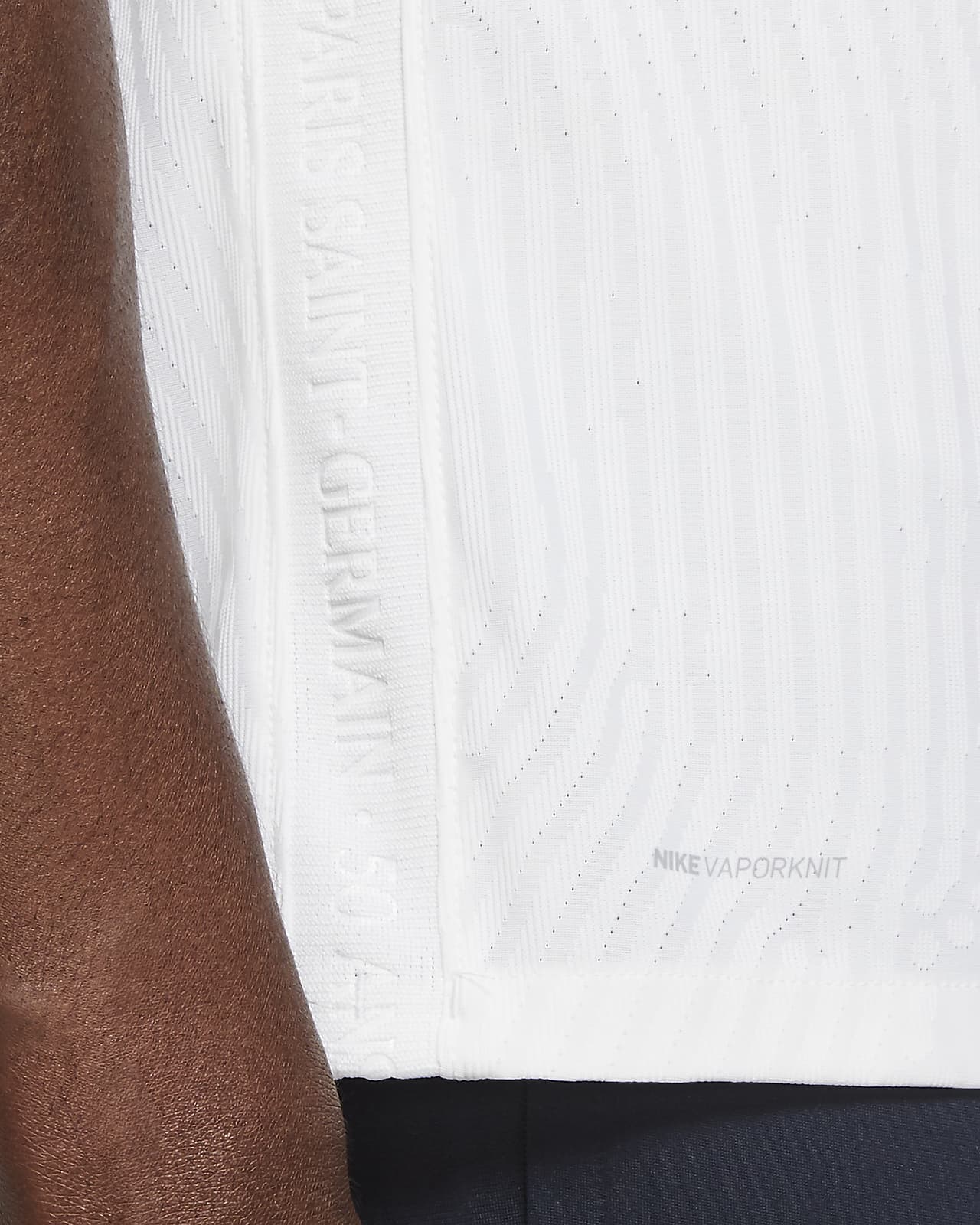 The stripe first appeared in 1973, three years after the formation of the club. The new away features a prominent Hechter stripe, this time taking its cue from the white kit worn in the 1995-96 season when Les Parisiens captured a first major European title. The central red stripe is lined with royal blue, the true color of the city of Paris, and sits against white. A classic blue polo collar is fastened by two central buttons and sits above a club crest and an exclusive elevated Swoosh design.