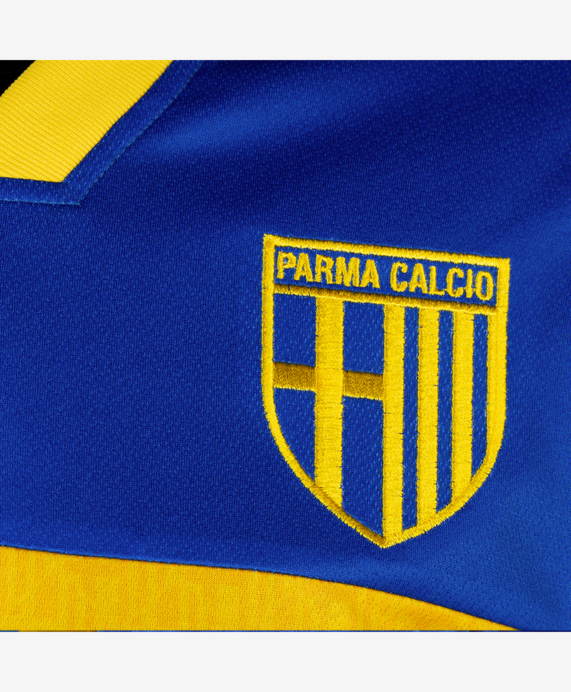 Using the same basic template as the “Yellow” version, this new joint-secondary Gialloblù shirt has a yellow central band which carries the branding of club sponsor Cetilar. The crest and Erreà logos appear in yellow also, for full contrast, as does, on the upper back, the phoenix symbol embraced by Parma to celebrate their recent rebirth.
