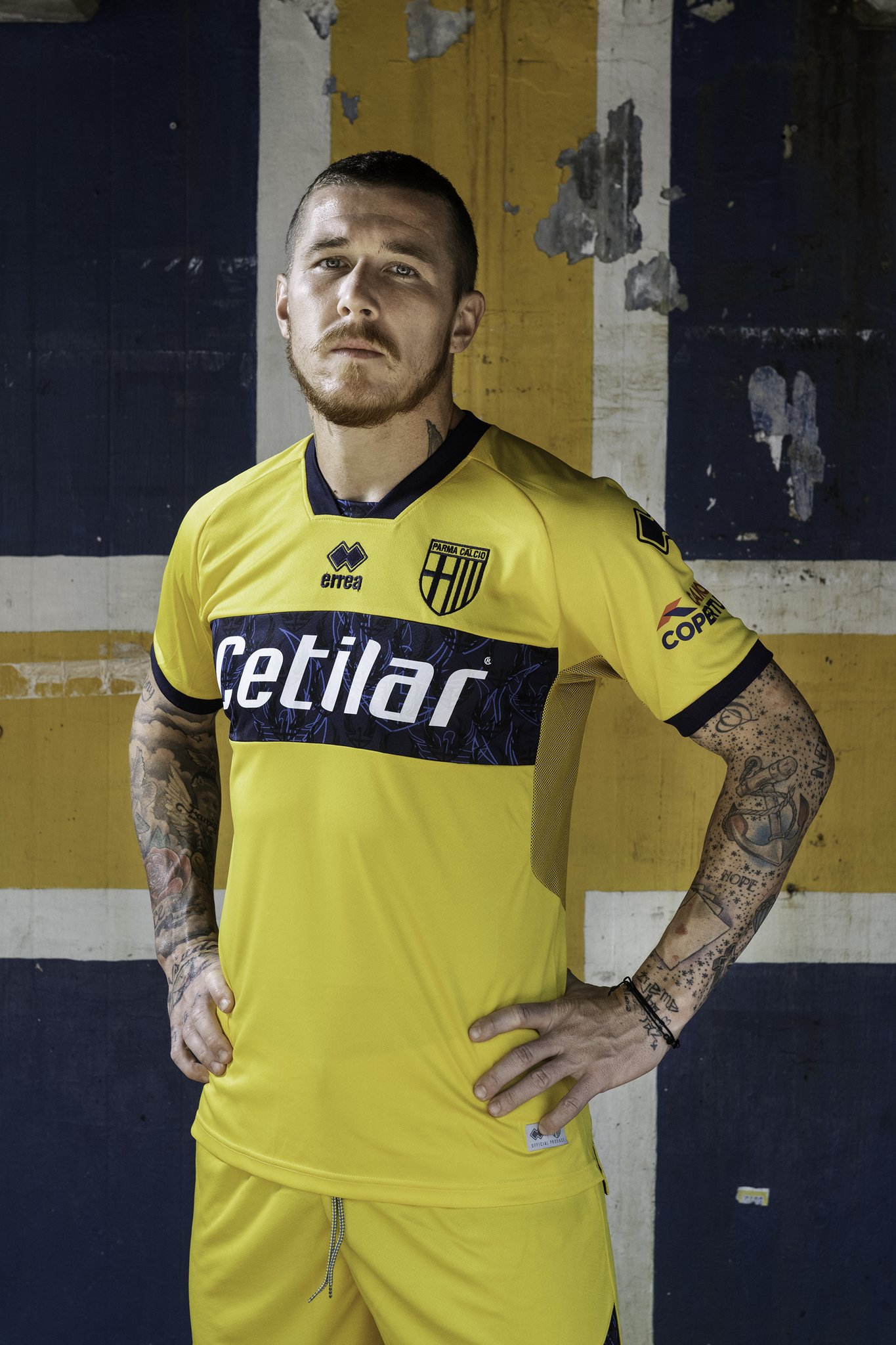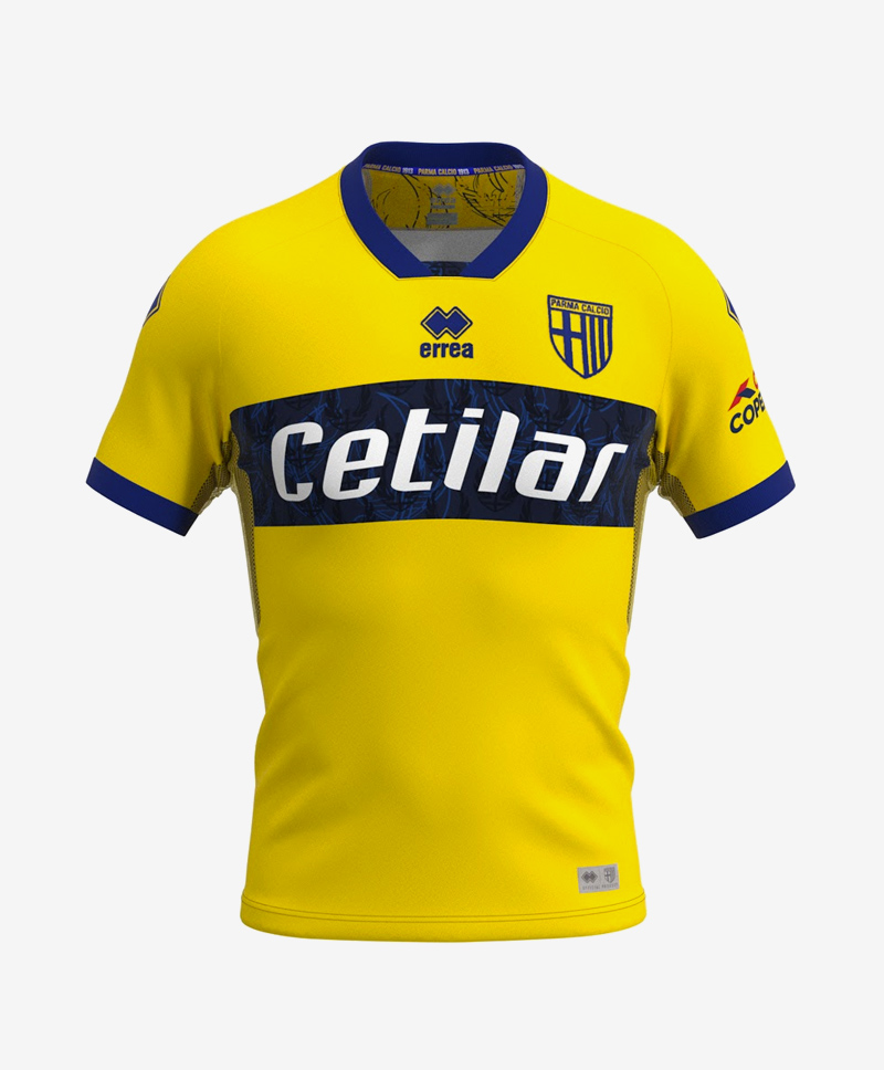 This is the recently launched Parma Calcio 1913 “Gialla” Away shirt by Erreà.