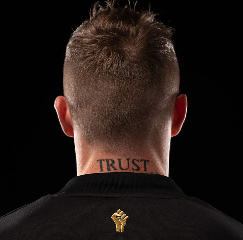 The shirt, which also features, in yellow, a “BLACK LIVES MATTER” inscription on the left sleeve and a Power Fist on the upper back, will be worn with black shorts and socks.