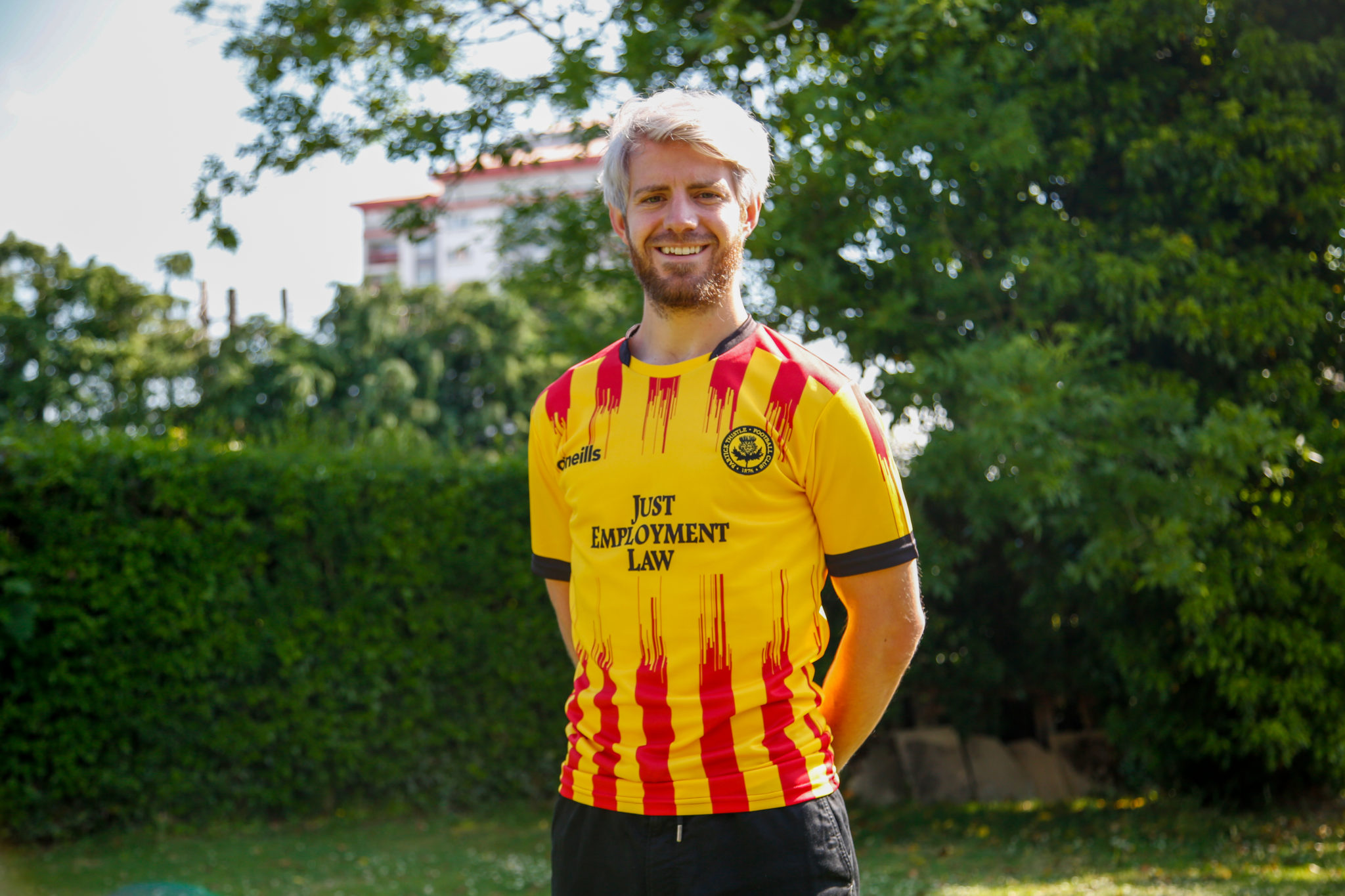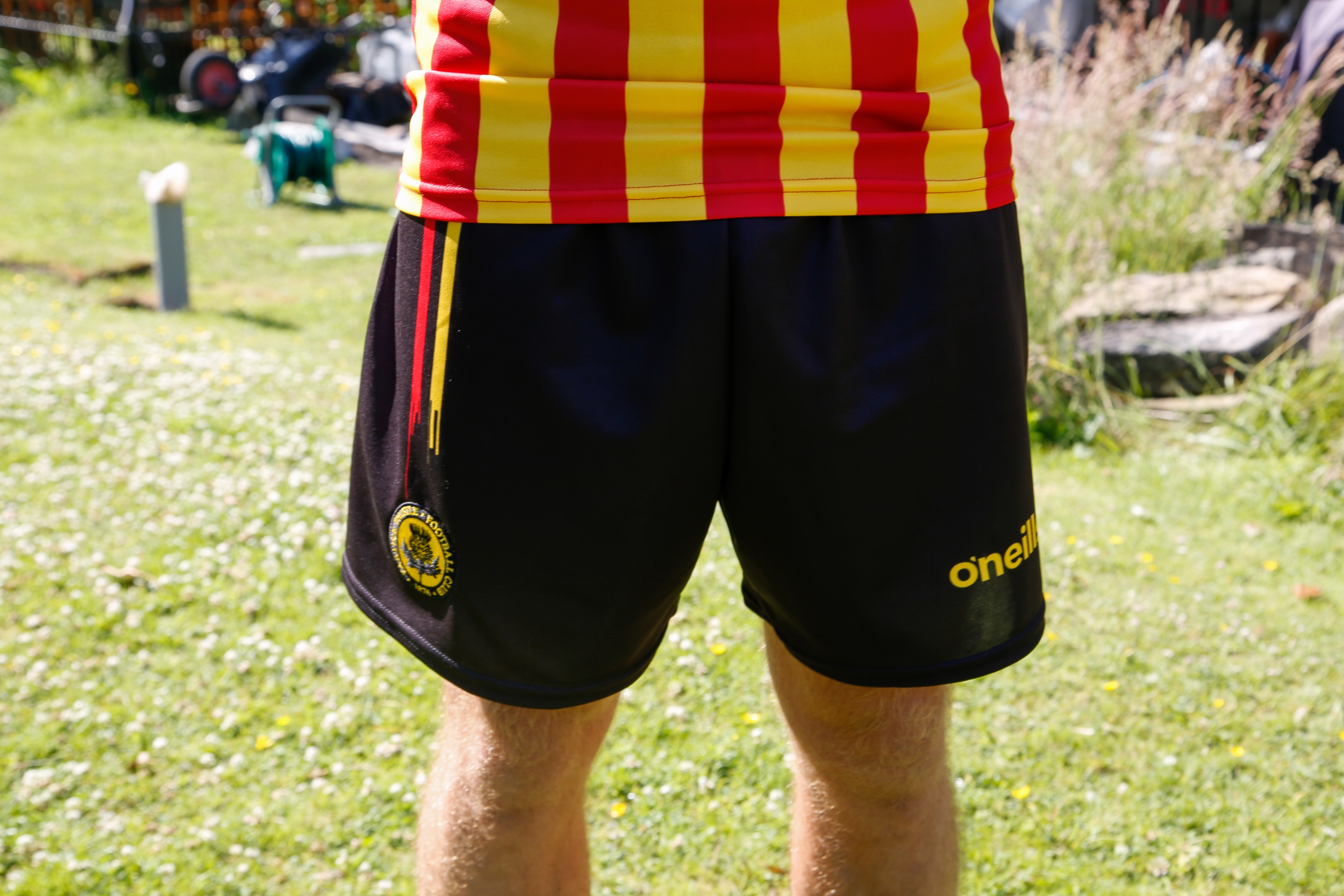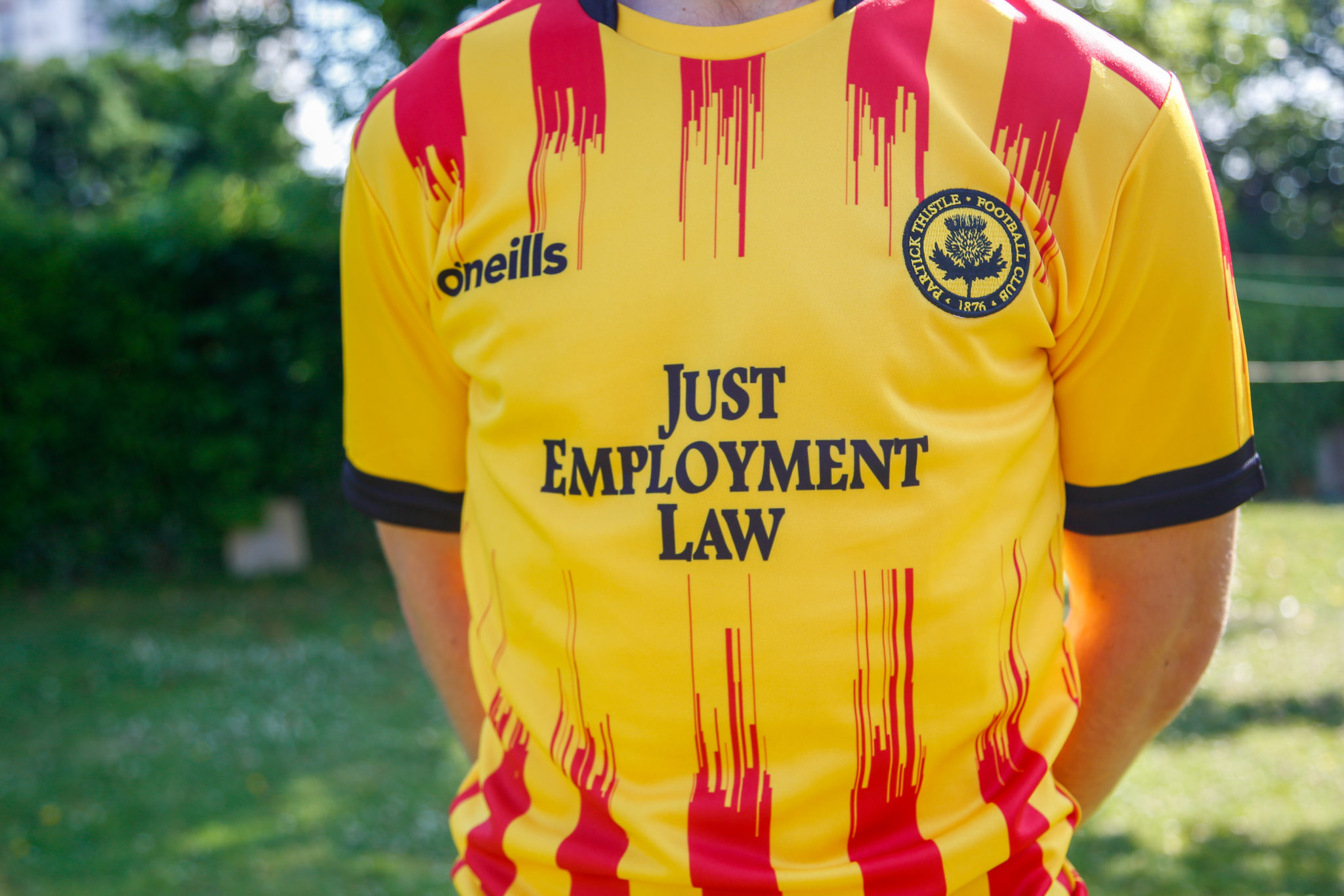 The traditional red and yellow striped top which is accompanied by black shorts and socks, is the first kit of the new partnership between O’Neill’s and Partick Thistle.