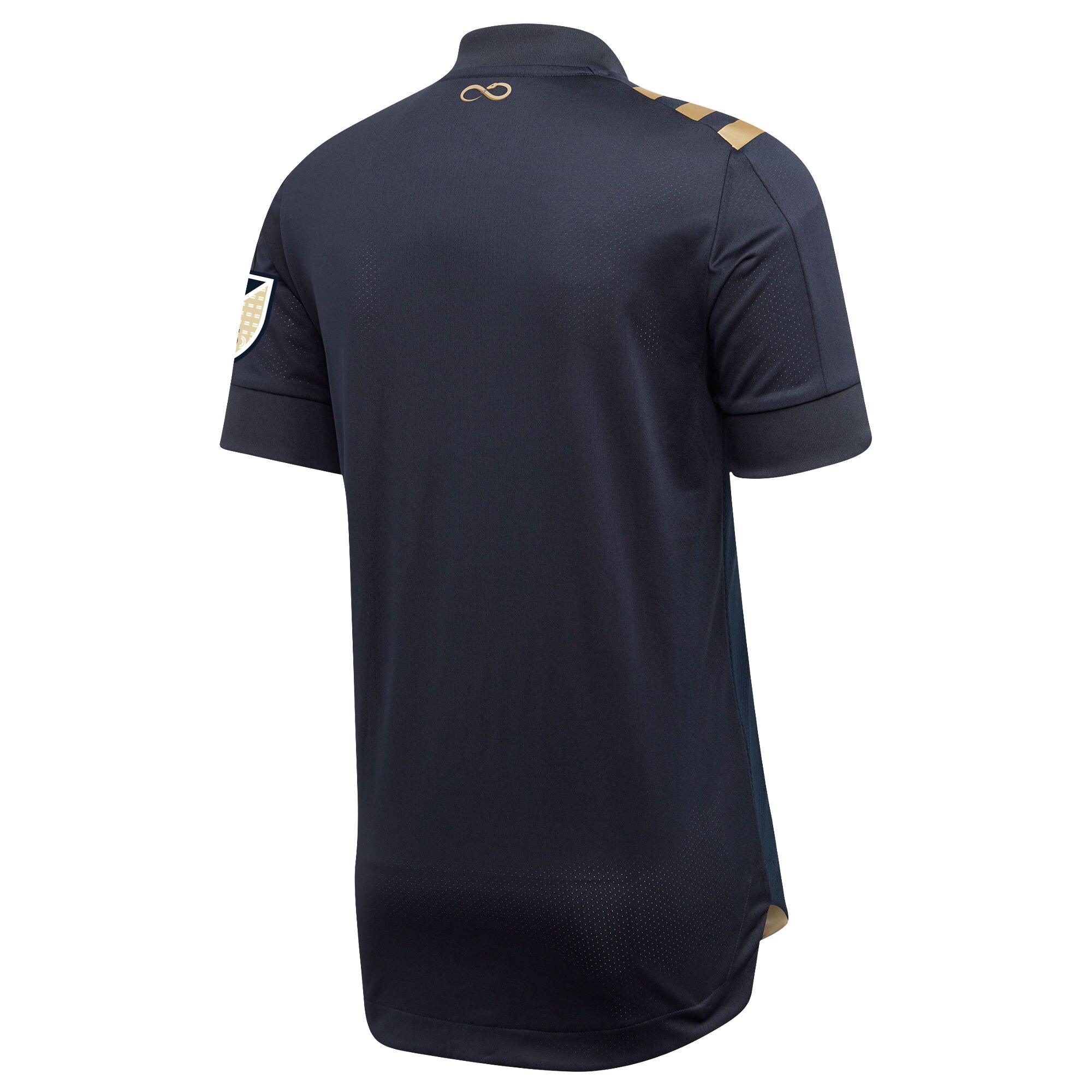 A large navy embossed snake from the Union's crest covers the front of the jersey and gold is featured in the adidas shoulder stripes, logo, club crest and the infinity snake at the back neck, which signifies the never-ending passion of our supporters. ‘Ad finem fidelis,’ which means ‘faithful to the end,’ adorns the lower hem in a direct reference to the continued loyalty and support from Union fans.