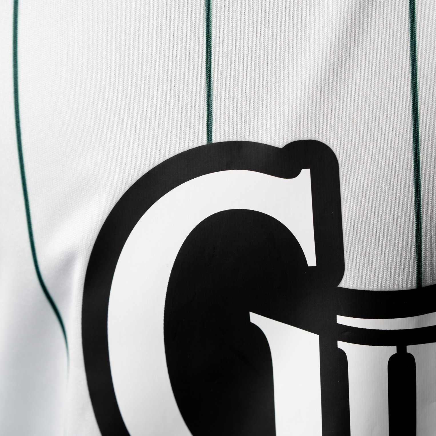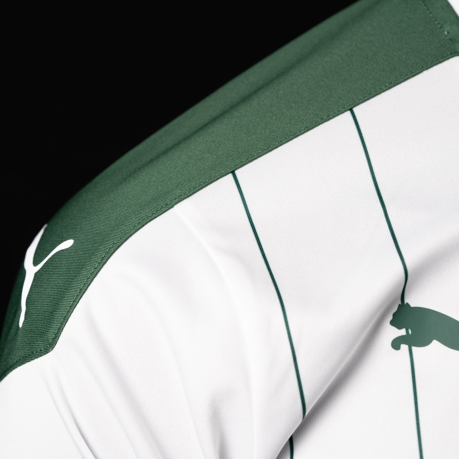 The design, teased on social media as #TheWhiteOne, features green pinstripes, with green shorts and socks, on a white shirt, and sports our iconic woven club crest appliqued onto the fabric.