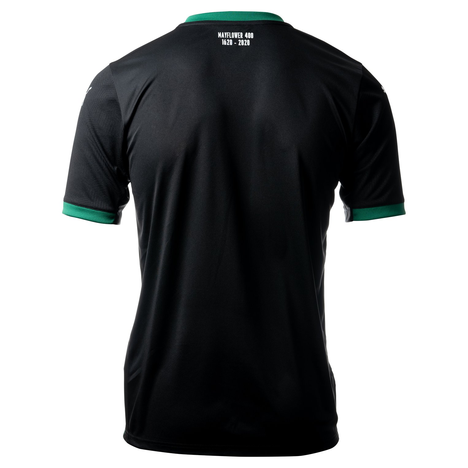 The third strip is available in a limited edition run of 1886 kits, a nod to the club’s year of foundation, and features the Pilgrims’ iconic club crest appliqued onto the chest, alongside a unique Mayflower 400 anniversary emblem on the neck.