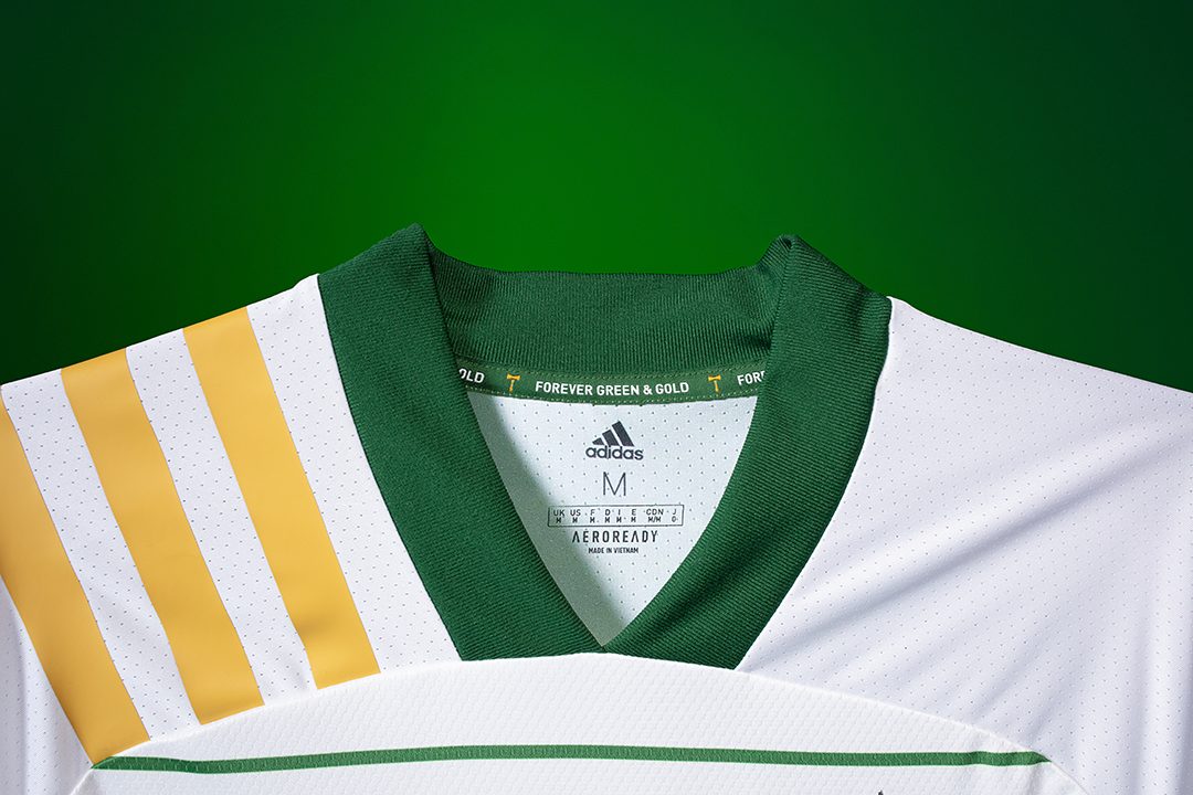 In addition to MLS’s 25th season, the Timbers are celebrating their 10th season in the league, an occasion commemorated on the jock tag. The jersey will also feature the words “Forever Green and Gold” on the inside neck tape.