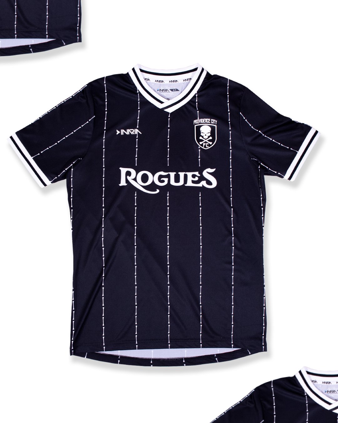 The shirt, complete with “Rogues” legend in classic US soccer style, can be worn with white or black shorts and socks to complete the kit.