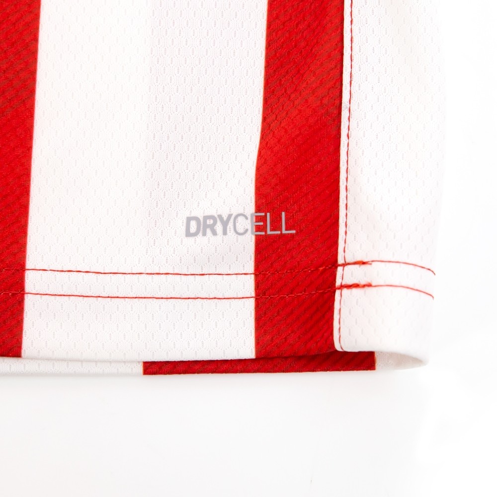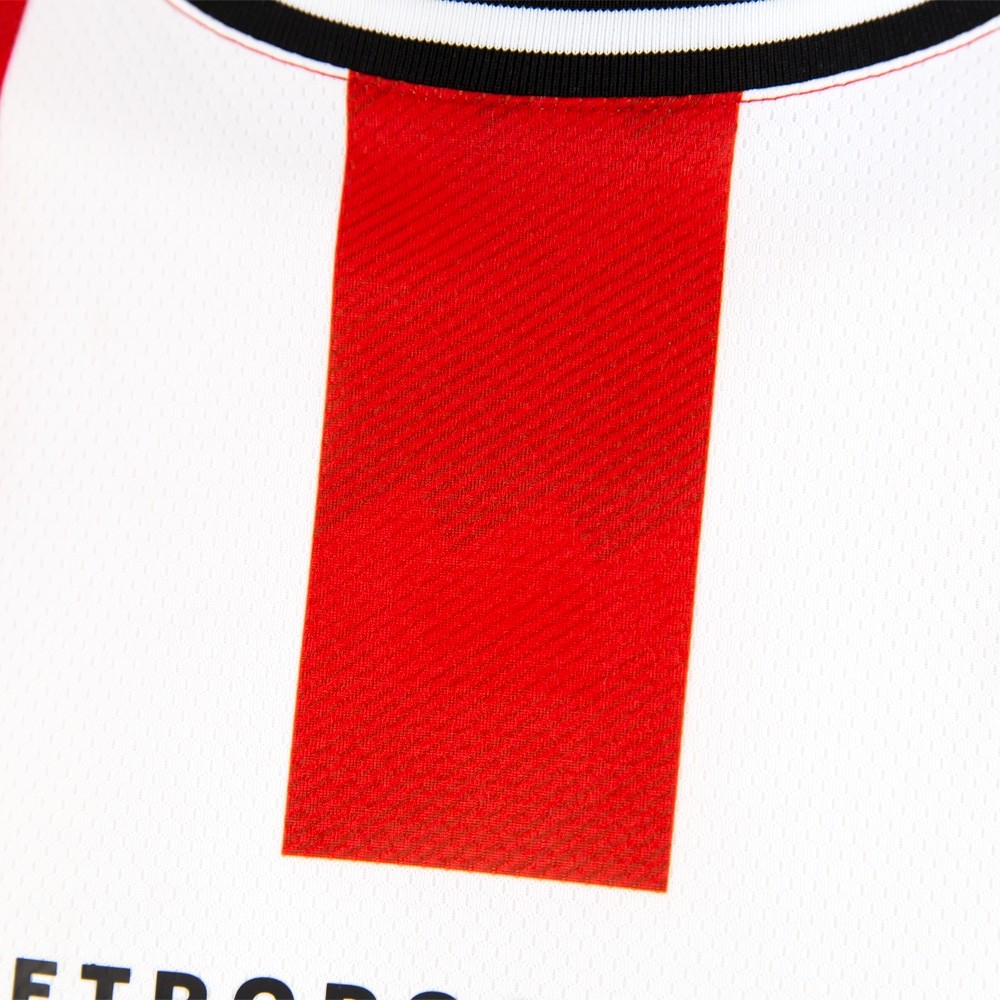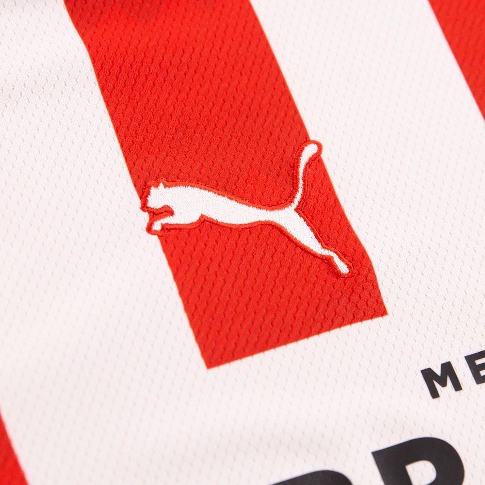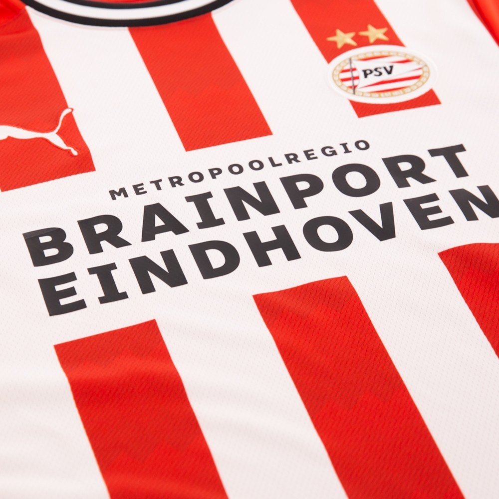 PSV is deeply connected to Eindhoven, referred to as ‘The City of Light’, a city vibrant with culture and global influence. The new PSV Eindhoven Home kit embodies the traditions and ideals of this transitional city. The classic red and white striped jersey subtly applies the city’s iconic ‘Vibe’ logo into the stripes, which signifies the power of sharing technique, design and knowledge.