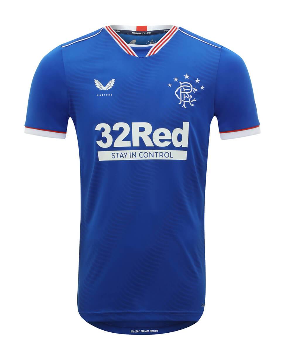 The jersey maintains the famous royal blue colourway of so many great title winning teams throughout history and combines this with a unique new wave pattern, designed to symbolise the Blue Sea of Ibrox and represent a new era for the club.