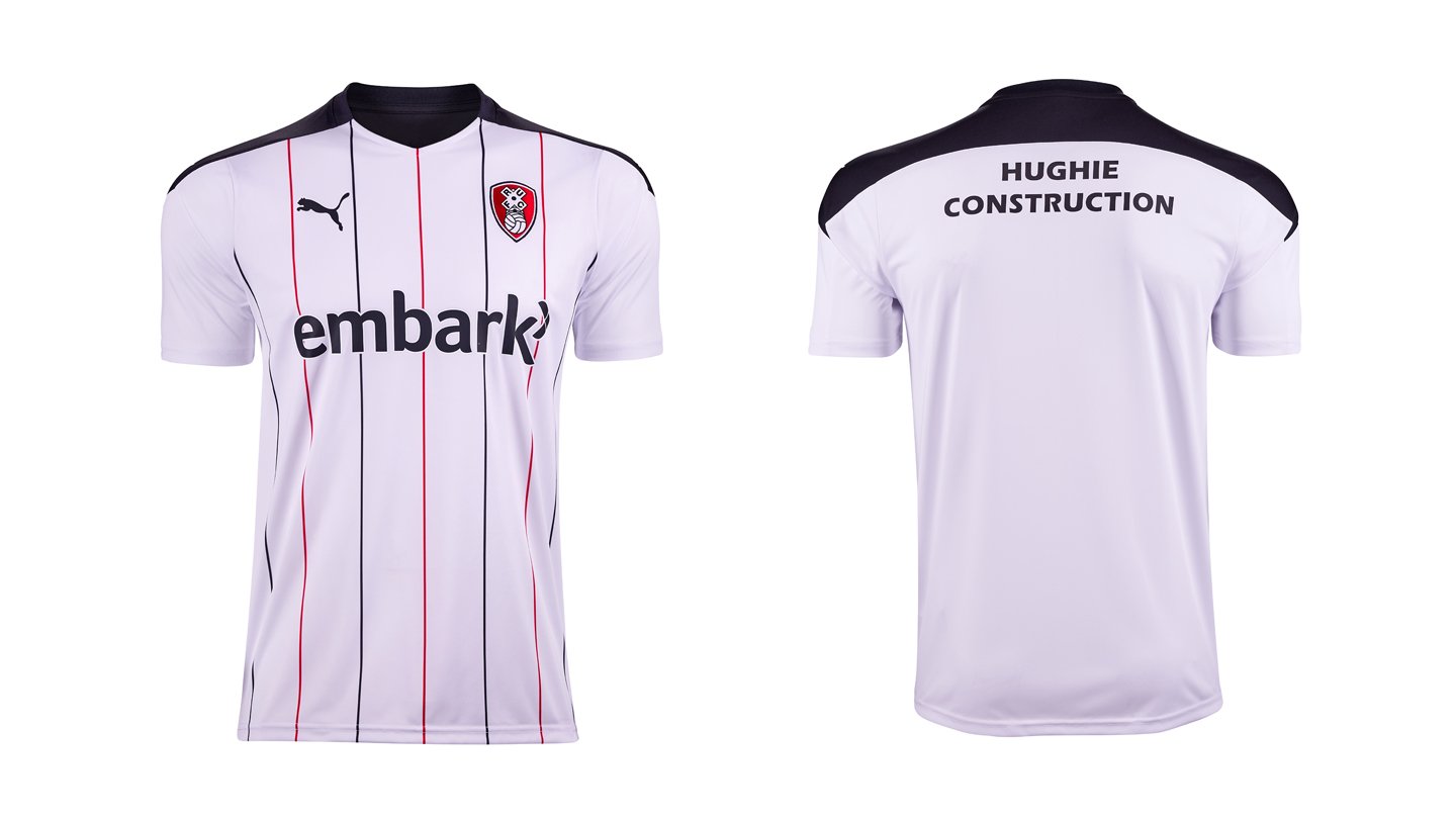 Like the home kit, the 2020/2021 alternate shirt will be sponsored again by Phil Smith and will display the Embark brand. On the reverse will be the logo of Hughie Construction, who have offices based at AESSEAL New York Stadium and are continuing to grow their business portfolio with the club.