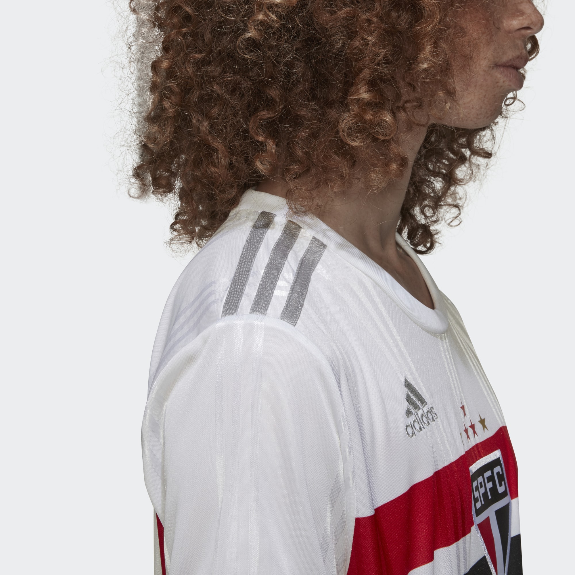 The adidas Sao Paulo 2020/21 Home Shirt's low-key shiny finish shows off celebratory silver details to mark 90 years since the club's foundation.