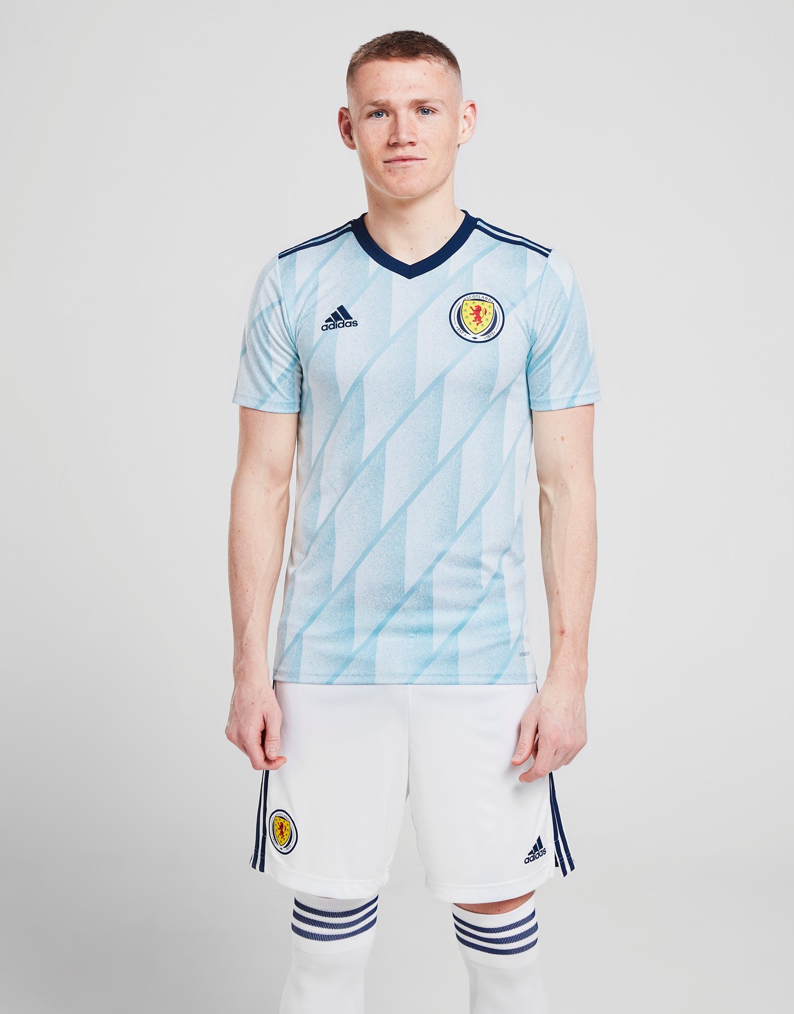 The new Scotland away kit has been officially unveiled. In a sky blue and white colourway, with navy accenting, this short sleeved shirt has a v-neck for a classic look.