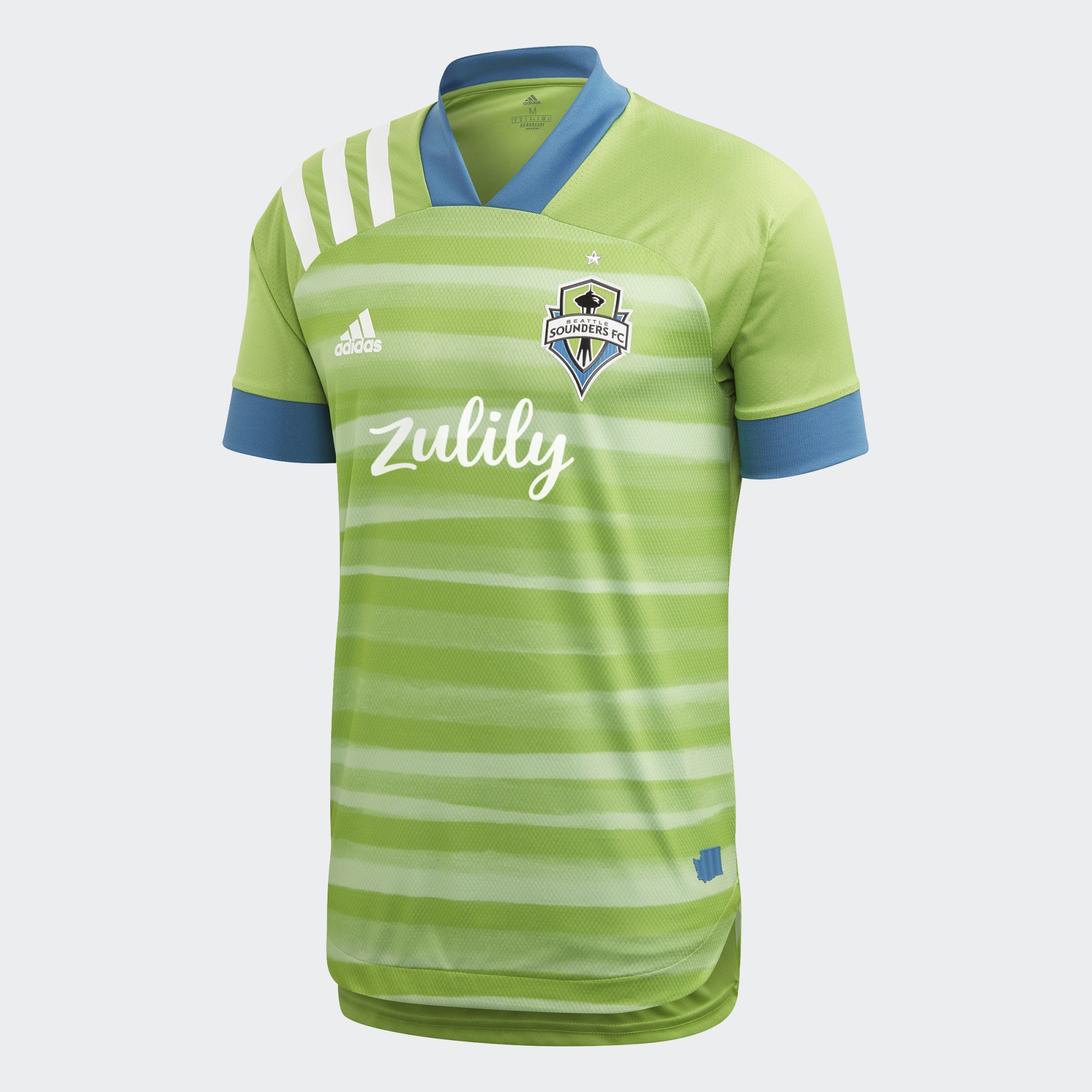 In 2020, Seattle Sounders FC’s Home kit features wave elements that not only respect the water from the Puget Sound, but also acknowledges the wave in their historical Sounders logos.