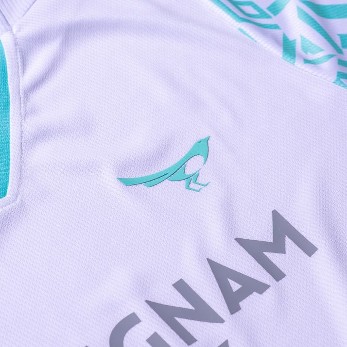 The design of the black home jersey focuses on the magpie’s sleek wings. This features as a graphic pattern in the shape of a wing. Trims have been added in white with a striking diamond pattern on the shoulders. This adds a subtle sheen that is sure to attract the eyes of the magpie’s supporters.