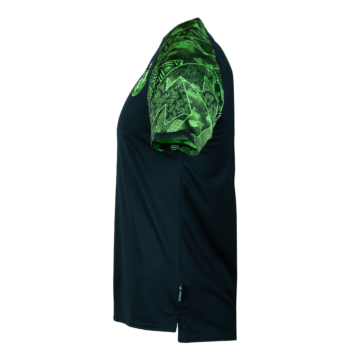 Coming in a black and green colourway with eye-catching graphics on the sleeves, this standard-fit shirt is made from a lightweight poly fabric for cool comfort.