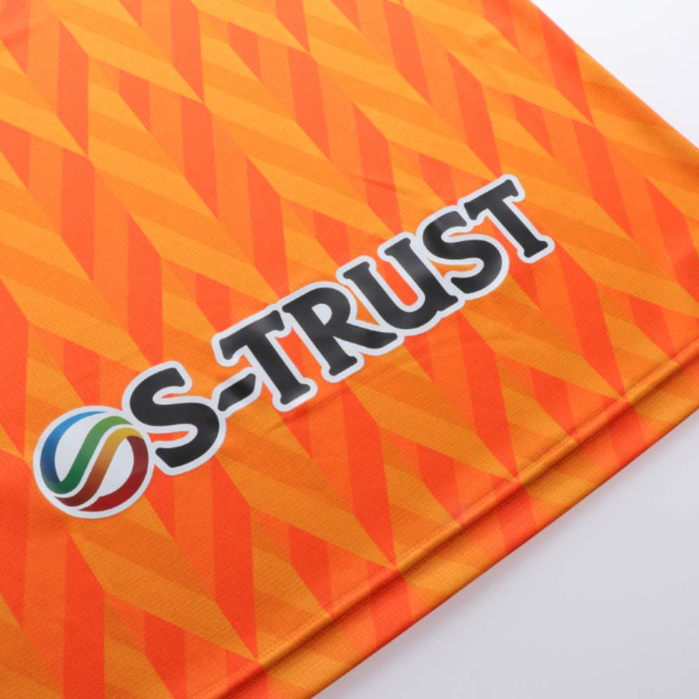 The partner sponsorship logos, as is common in the J-League, appear in obtrusive colouring - several in heat transfer patch form.