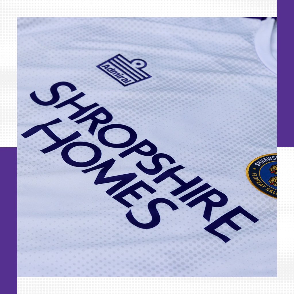 The front also houses an embroidered club crest and Admiral logo. Shropshire Homes have again sponsored the away kit as they continue their long serving support of the club.